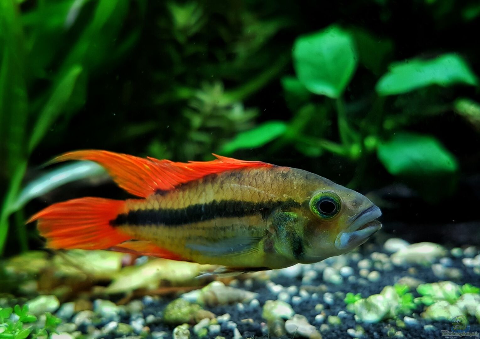 Hier findest Du traumhaft schöne Aquarien, die mit Apistogramma trifasciata (Rotstrich-Zwergbuntbarsch) aus Südamerika besetzt sind.