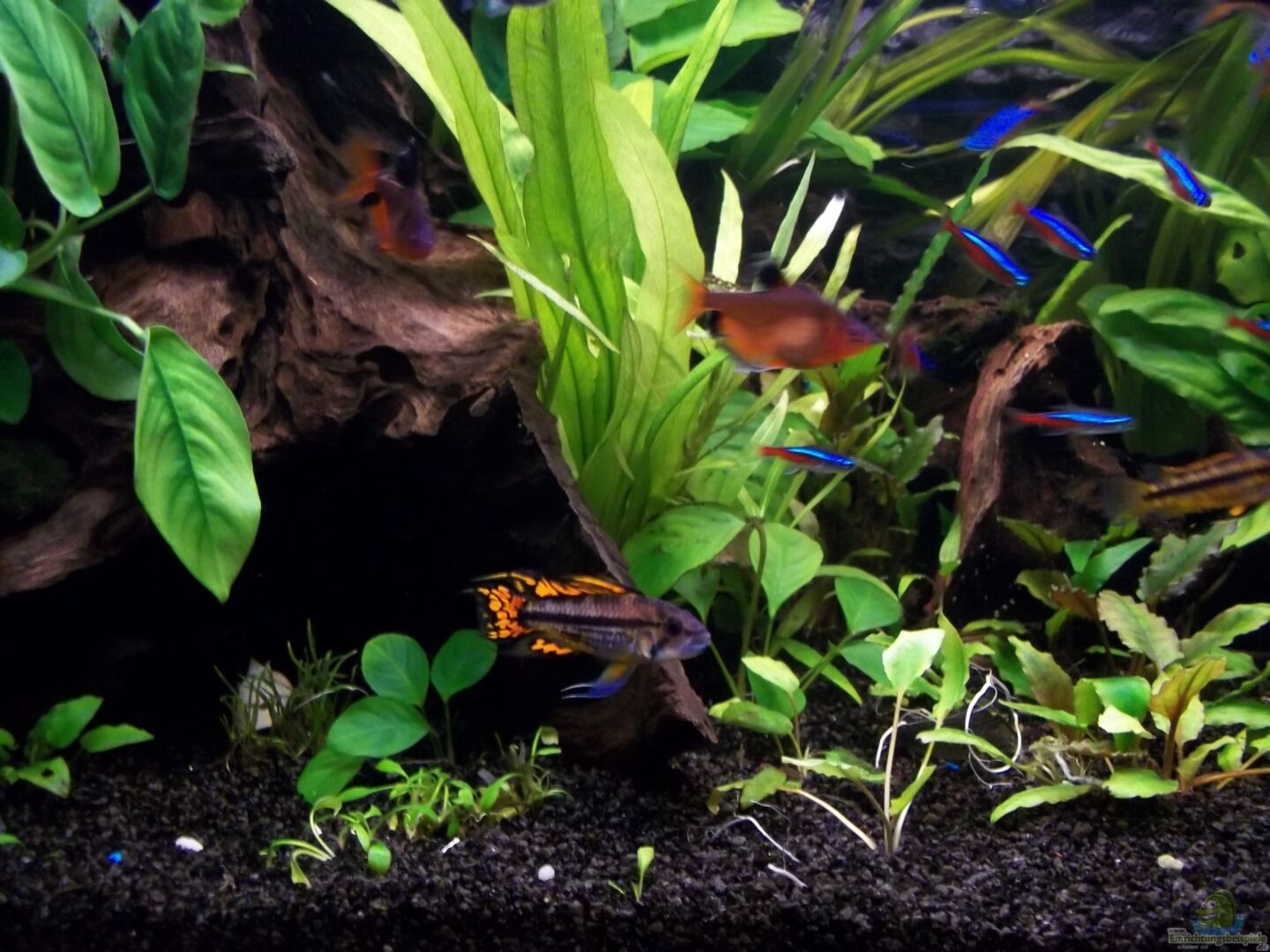 2Kakaduzwergbuntbarsche 1M/1W 15 Rote Neon 6 Keilfleckbärblinge 6 Blutsalmler 6 Jullii Cory Panzerwelse 2 Flossensauger 2 Ancistrus 1M/1W 1 Zebra Rennschnecke