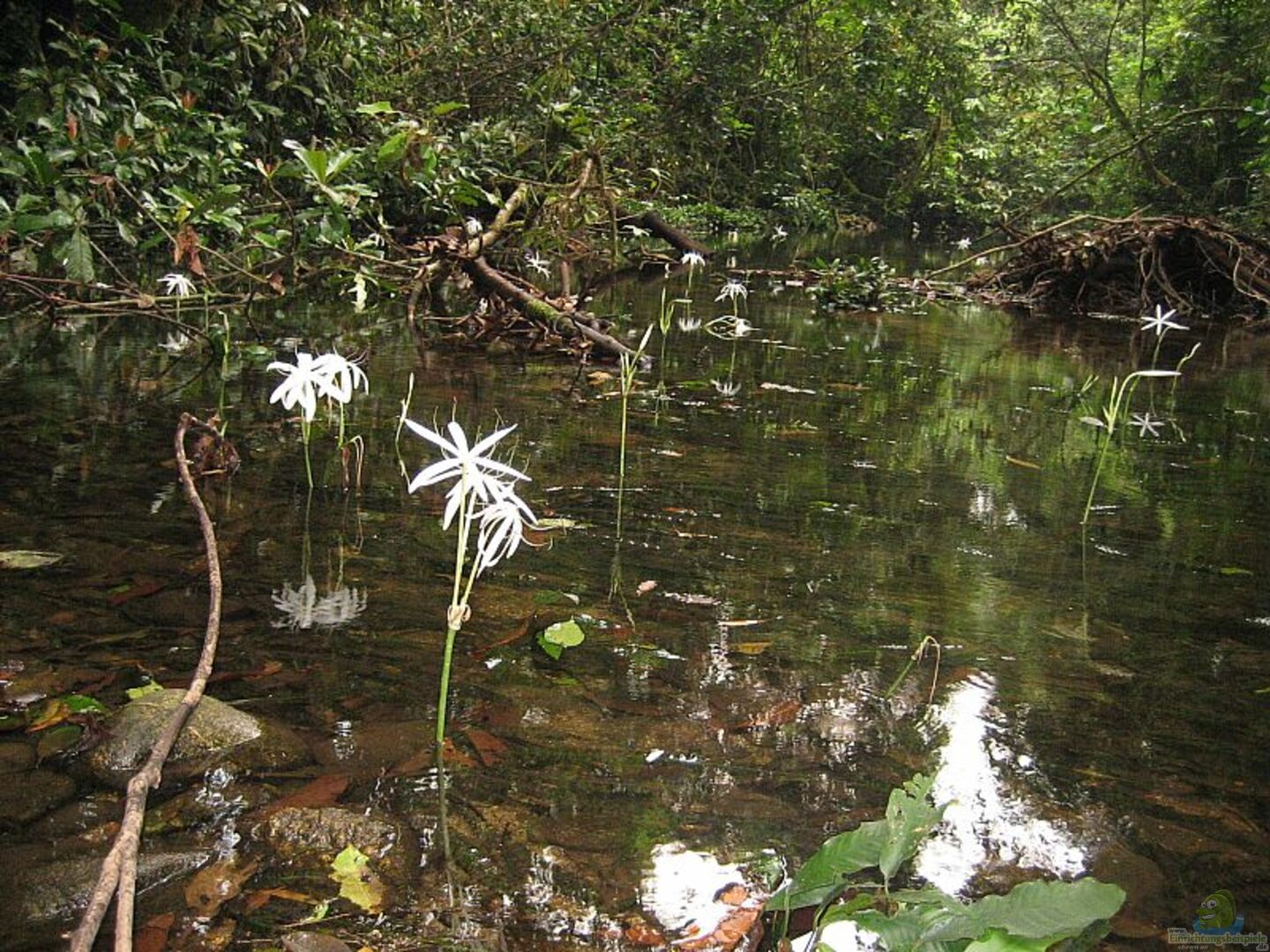 Das Becken soll ein Biotop aus Kamerun und Gabun wiedergeben. Die Uferregion eines kleinen Urwaldbaches mit hereinwachsender Randvegetation. Die Aufnahmen sind von Dr. Eckhard Gottschalk aus dem JAhre 2007. (Quelle: http://www.uni-forst.gwdg.de/~dkopets/kamerun2007.html )