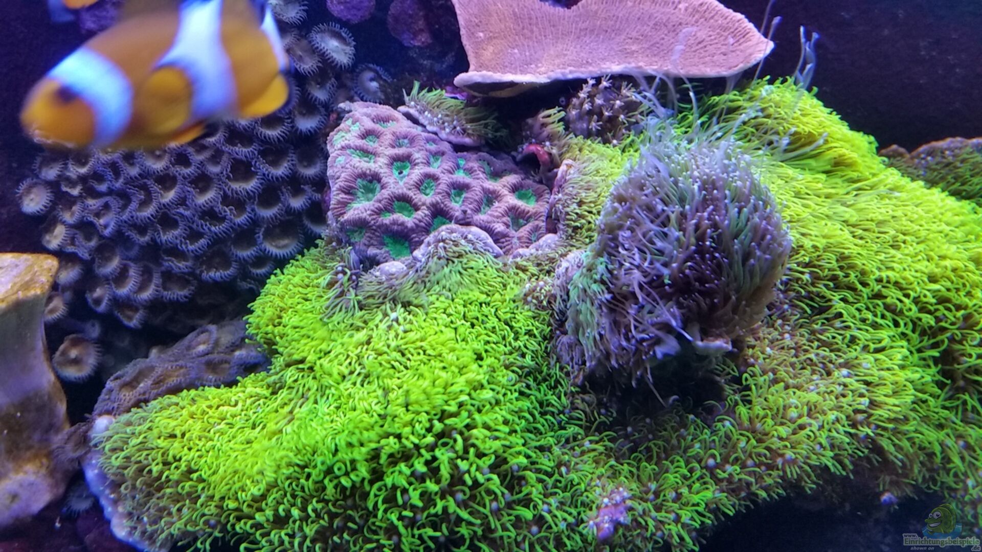 1 Zebrasoma scopas (Brauner Doktorfisch) 1 Cirrhitichthys falco (Zerg-Korallenwächter) 2 Lysamata amboinensis (Putzergarnele) 3 Chrysiptera hemicyanea 1 Pictichromis paccagnellae (Nymphen-Zwergbarsch) 10 Einsiedlerkrebse 3 Turboschnecken Div. Anemonen- und Korallenarten.