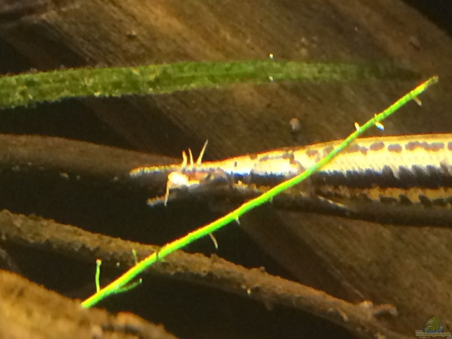 3x Gefleckter Knochenhecht Lepisosteus oculatus Grö??e ca. 13-15 cm Geschlechter wohl 1/2 (w/m). Ist in dem Alter noch schwer zu bestimmen. Aber einer wirkt etwas kräftiger und breiter. 1x Neolamprologus pulcher (sucht noch ein neues Zuhause) Ca. 20-50 Endeler Guppy Mix (je nach Appetit der Knochenhechte). Werden regelmä??ig aus eigener explodierender Zucht nachgefüllt oder vermehren sich selber im Becken. Wer einmal Guppies hatte wei?? wovon ich reden, der Millionenfisch. 1x [...]