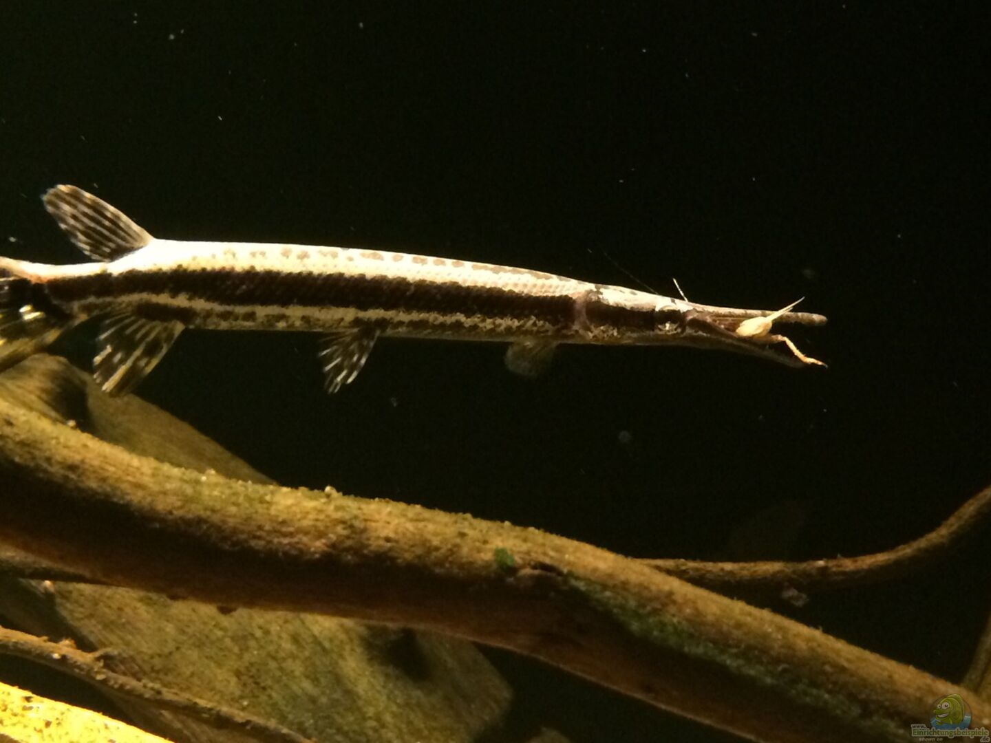 3x Gefleckter Knochenhecht Lepisosteus oculatus Grö??e ca. 13-15 cm Geschlechter wohl 1/2 (w/m). Ist in dem Alter noch schwer zu bestimmen. Aber einer wirkt etwas kräftiger und breiter. 1x Neolamprologus pulcher (sucht noch ein neues Zuhause) Ca. 20-50 Endeler Guppy Mix (je nach Appetit der Knochenhechte). Werden regelmä??ig aus eigener explodierender Zucht nachgefüllt oder vermehren sich selber im Becken. Wer einmal Guppies hatte wei?? wovon ich reden, der Millionenfisch. 1x [...]