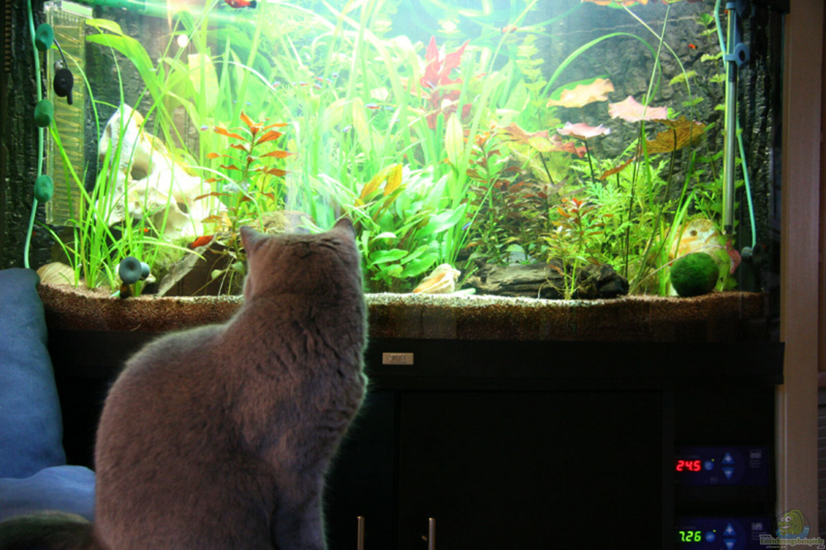 2 x PC-Lüfter zur Kühlung der Leuchtstoffröhren in der Abdeckung. Drehzahl regelbar über Lüftersteuerung. Ohne die Lüfter wurde das Wasser durch die Leuchtstoffröhren zu stark aufgeheizt, so da?? die Bodenheizung fast nur Nachts lief. Durch die Lüftung wird als posiver Nebeneffekt auch unsere sehr trockene Wohnungsluft befeuchtet :-)