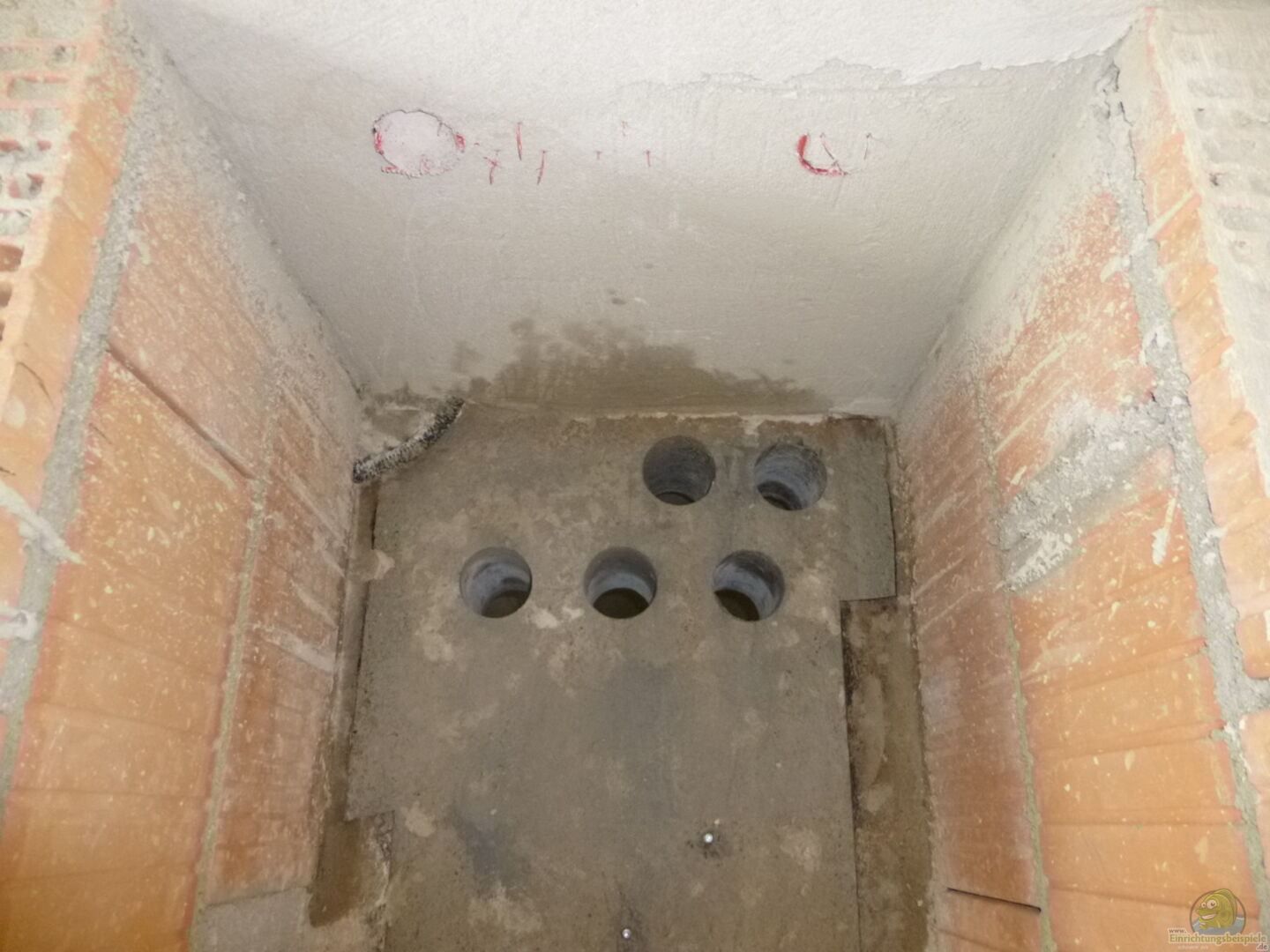 Das Becken ist eine Anfertigung von Joos Aquarienbau. Es besteht aus 19 mm Glas. Im Becken befindet sich mittig ein Ablaufschacht mit 3 Bohrungen (Zulauf, Ablauf und Notablauf.