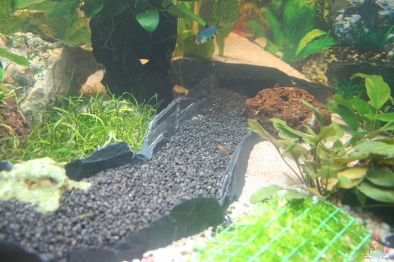 Aquarium und Unterschrank wurden komplett mit wei??er D-C-Fix Folie beklebt, sieht jetzt echt stark aus. Stra??e aus schwarzem Kies und Schiefer-Abgrenzung. Hinterer Bereich Terasse auch mit Schiefer Abgetrennt. Gembird ??berspannungsschutz-Steckdosenleiste mit 6 Steckdosenplätzen, 4 davon sind programierbar.
