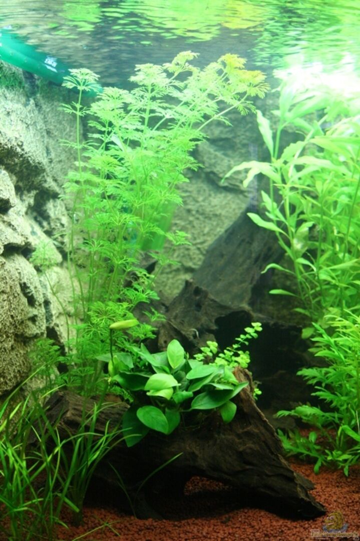 Becken wurde am 25.08.2012 neu eingerichtet. Pflanzenbeschreibung noch nicht vollständig. Hinten: 3 x Echinodorus grisebachii - Grisebachs Schwertpflanze Mitte: 2 x Echinodorus Dschungelstar - Kleiner Bär Linke Seite: mehere Vallisneria americana - Riesenvallisnerie Sonstiges: Lemna minor - Kleine Wasserlinse (Vermehrt sich prächtig und zieht extrem Nährstoffe. Ideale Schwimmpflanze um Algenwuchs vorzubeugen. Wenn sie zu viel wird einfach beim Wasserwechsel [...]