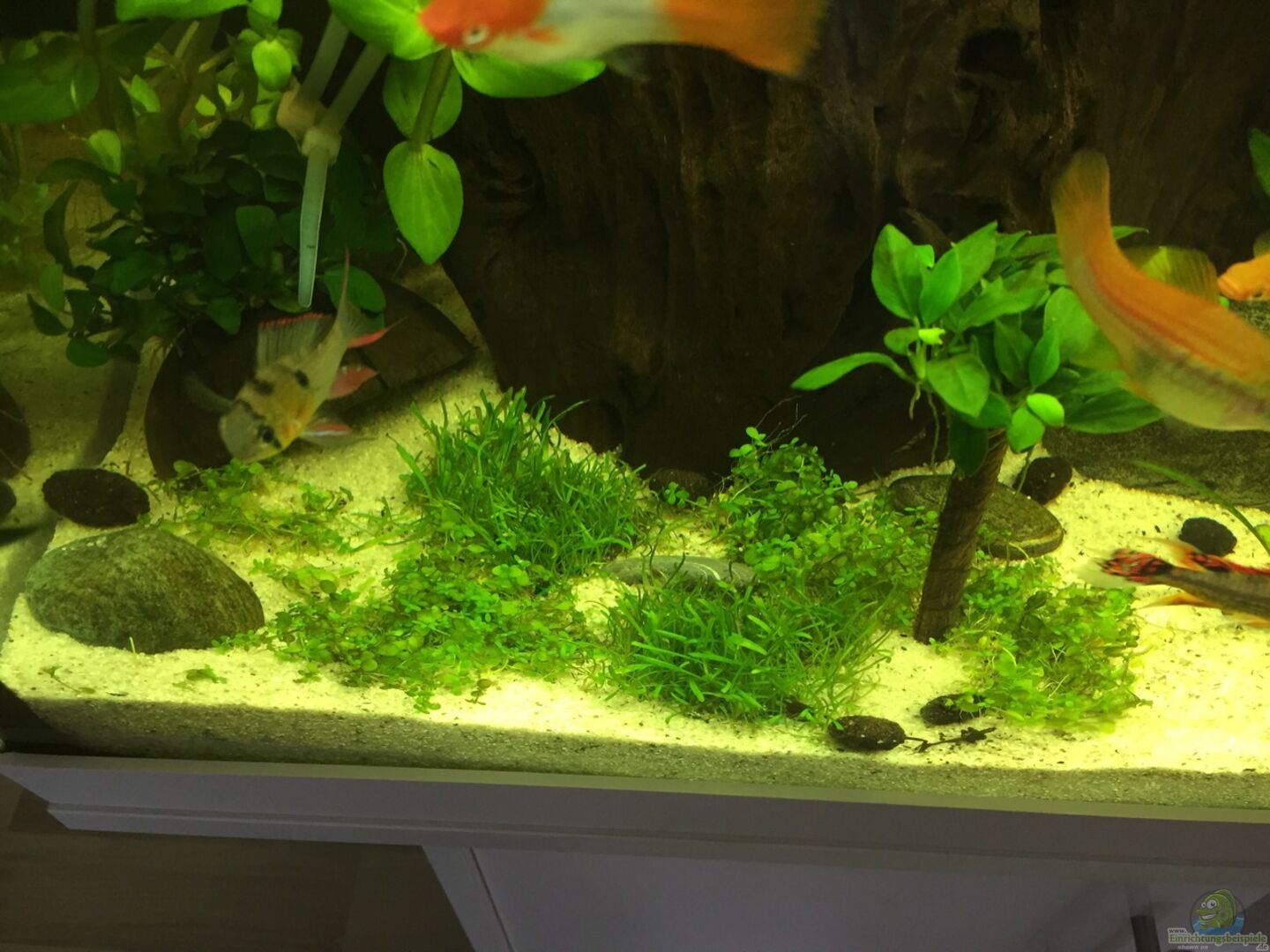 Alternanthera Reineckii Bronze Alternanthera Reineckii Rot Anubias Barteri Anubias Barteri Nana Cryptocoryne spec. Legroi Nymphaea Rot Hemianthus Callitrichoides Echinodorus Cordifolius Javafarn Vallisneria Australis Curly Bacopa caroliniana Mit Easylife Wochendünger wird gedüngt