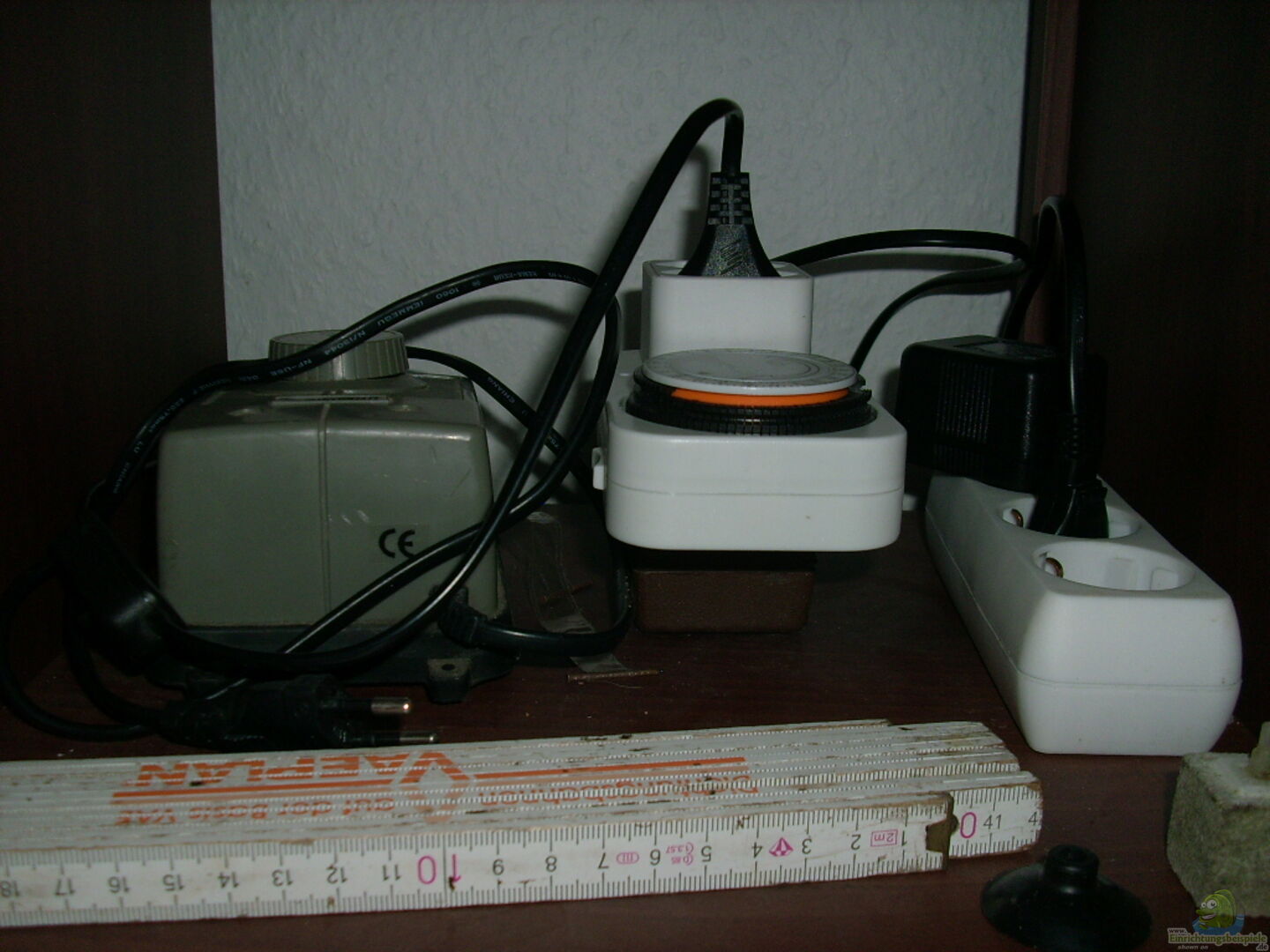 - Fluval Regelheizer (200 Watt) -> eingestellt auf 26° - Belüftungspumpe mit Sprudelstein: nicht in Betrieb (ist für Notfälle) - Marina Aqua Minder: gibt mir die genaue Temperatur an - Herkömmliches Thermometer (Glasrohr...), ich verlasse mich nie ganz auf die Technik. - 2x mechanische Zeitschaltuhr: 1x für Neonröhren/ 1x für das Mondlicht - Dennerle CO2 Anlage: Comfort Line für Aquarien bis 300 Liter 1x CO2 Einwegvorratsflasche (500 g) 1x CO2 Druckminderer 1x CO2 [...]