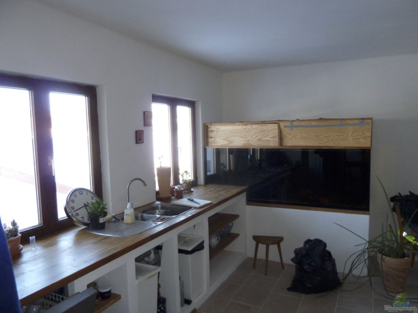 Das Aquarium steht auf einem selbstgemauerten Unterbau aus Ytong, dieser ist verputzt und gekalkt. Der Unterbau fügt sich nahtlos in die restliche gemauerte Küche ein. Ziel war es, das Becken mit der Küche zu verbinden, es nicht als separates Möbelstück zu sehen, sondern es mit dem Interieur zu verbinden. Aquarien in dieser Grö??e sind immer Sonderanfertigungen. Leider gab es Probleme einen geeigneten Aquarienbauer zu finden. Durch den speziellen Standort (integriert in die Arbeitsplatte) [...]