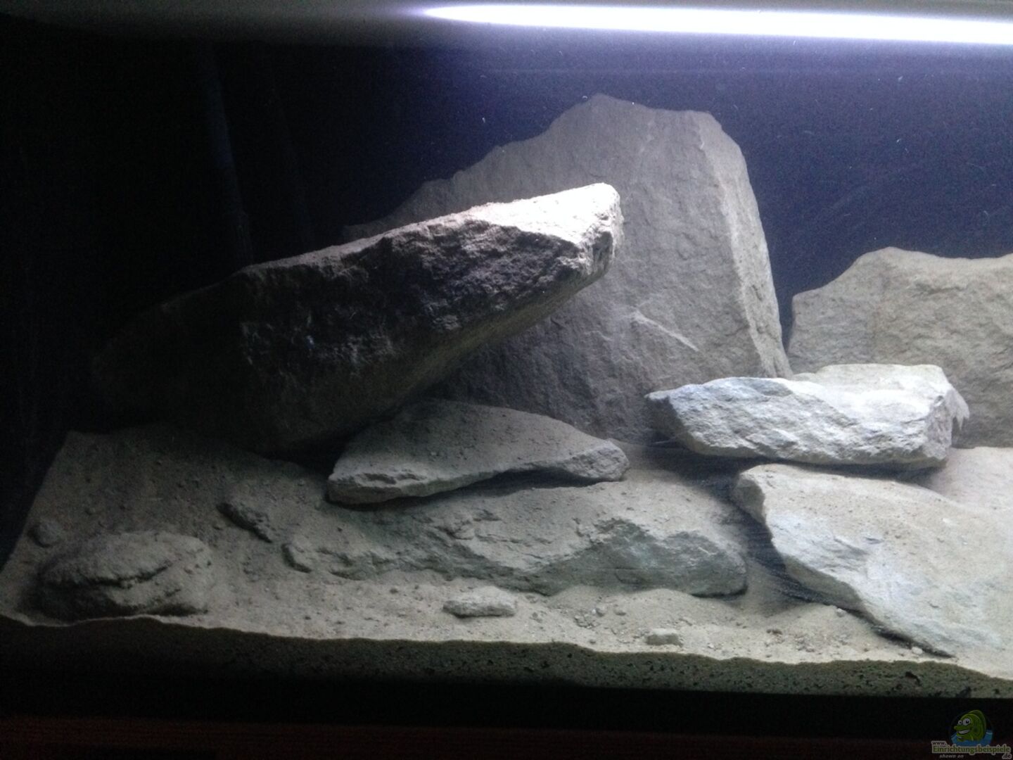 Das Becken wurde mit ca. 250kg Gestein aus Molasse von einem Steinwerk ausgestattet, was eine anschaulich, natürliche Umgebung, schafft. Dazu der gleichfarbige Sand, somit ein idealer ??bergang.