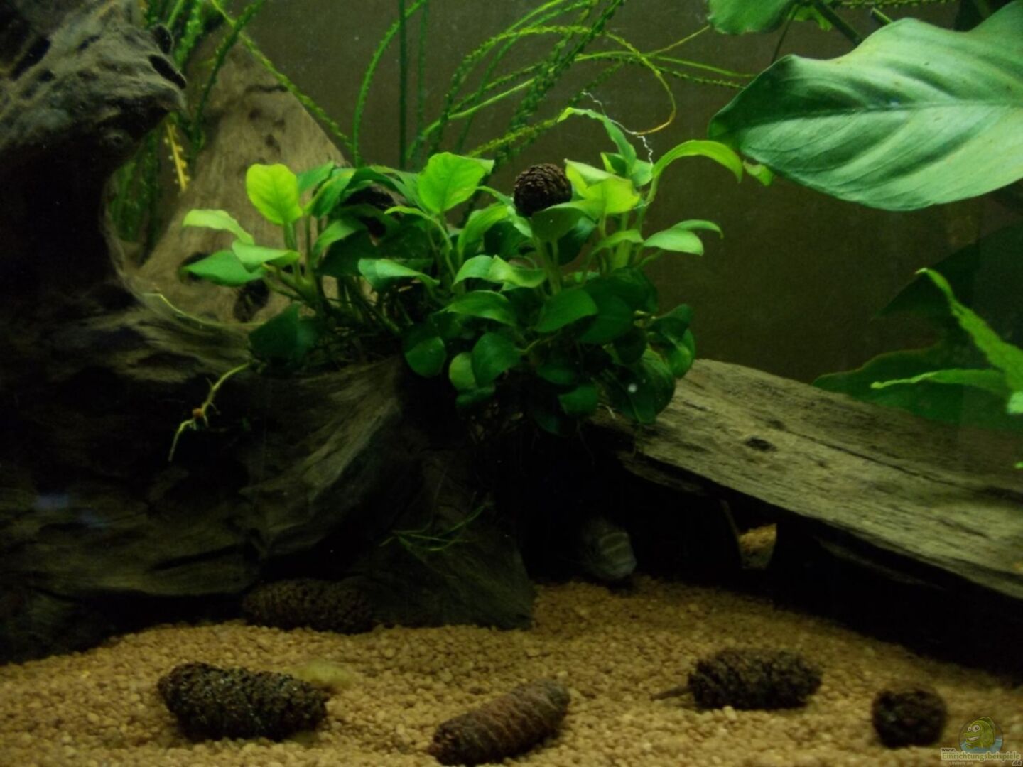 -Grosse Holzwurzel bepflanzt mit Anubia barteri var.nana -kleine Holzwurzel bepflanzt mit Anubia barteri var.nana und Javafarn -Moorkienwurzel und einige "??ste" die ich davon abgetrennt habe -2 Kokosnusshöhlen - - - - - - - - - - - - - - - - - - - - - - - - - - - - - - - - - - - - - - - - - - - - - - - - - - - - - - -Erlenzapfen -Seemandelbaumblätter Diese werden alle 2 Wochen beim Wasserwechsel ersetzt - - - - - - - - - - - - - - - - - - - - - - - - - - - - - - - [...]