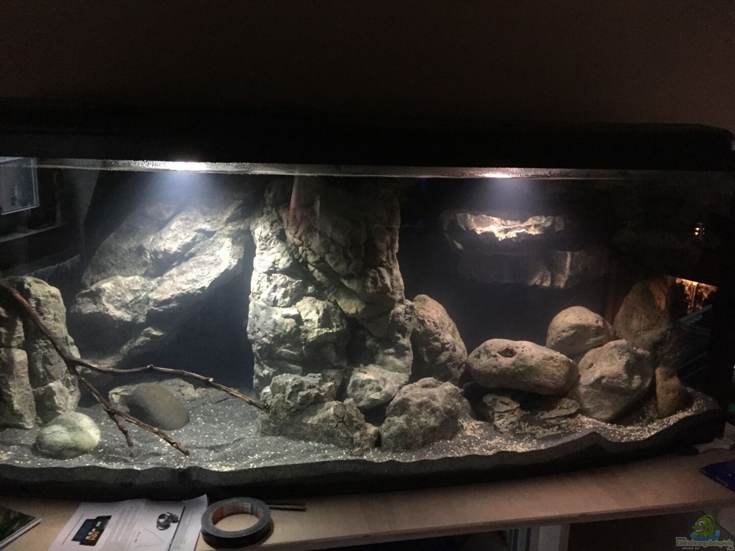 Das Becken ist ein Panorama Aquarium von AquaTec Pausa. Es hat 2 Längs- und 1 Querstrebe. Die Glasstärke beträgt 12mm. Es wurde neu gekauft da mein altes 300l Becken ein Leck hatte und das Wasser sich schön in der Wohnung verteilt hatte. Nach der Bestellung des neuen Beckens musste ich einen Statiker bestellen, da ich mir nicht sicher war ob die Deckenbelastung des Altbaus stand hält...aber alles super. Das Aquarium steht auf einer Schaumstoffmatte und im inneren ist der Boden des Aquariums [...]