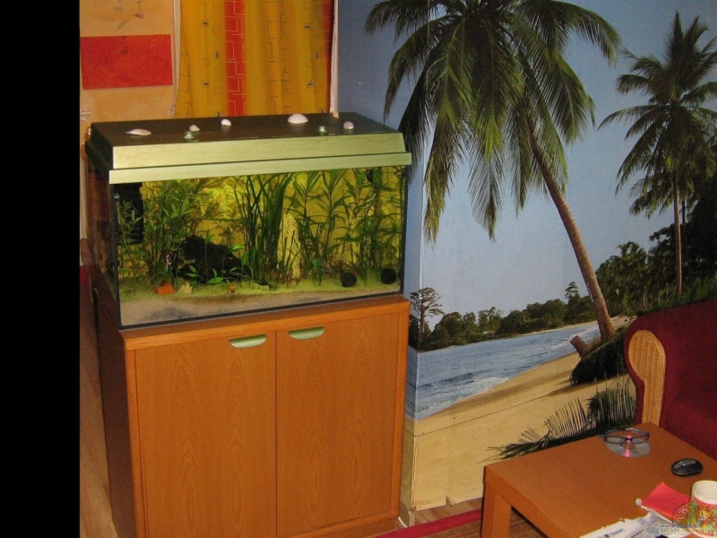 Juwel Aquarium.Von mir Selbst angefertigte Aquarium Rückwand .Die Rückwand im Oberen Teil hat ihr Landteil der Ideal Für die Schnecken ist um ihr Gelege zusetzten.(Es wurden KEINE LACKE verarbeitet!) Viele Höhlen und schrägen mit eingebaut. (Becken dient zusätzlich als Raum trenner.) _____ ____ Des weiterem habe ich von meinen Aquarien die Abdeckungen in gleicher Farbe Lackiert (metallicgrün /Farbeffekt Hammerschlagt) = Oberfläche sieht aus wie ein Golfball. [...]