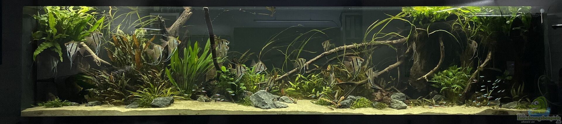 Das Aquarium besteht aus 15mm dicken Scheiben. Bohrung an der rechten Seitenscheiben mit direktem Anschluss an das Abwasser für den einfachen Wasserwechsel.