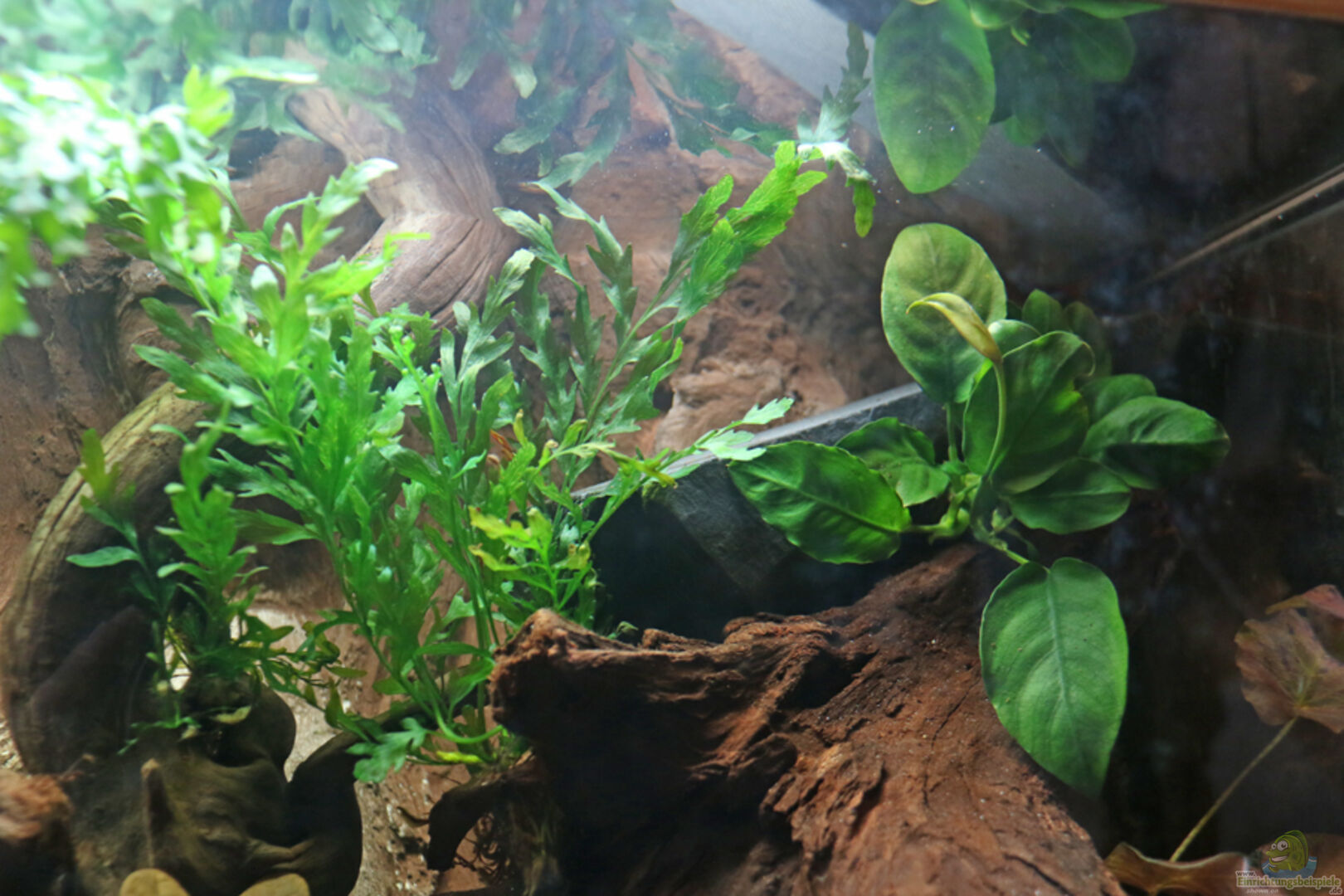 Pflanzen im Bodengrund: Nymphaea lotus "rot" (Tigerlotus) Aufsitzerpflanzen: Bolbitis heteroclita (Kongofarn) Anubias barteri var. nana (Zwergspeerblatt) Anubias barteri var. nana "Petite" (Bonsai-Zwergspeerblatt) Düngung: EasyLife ProFito (wöchentlich)