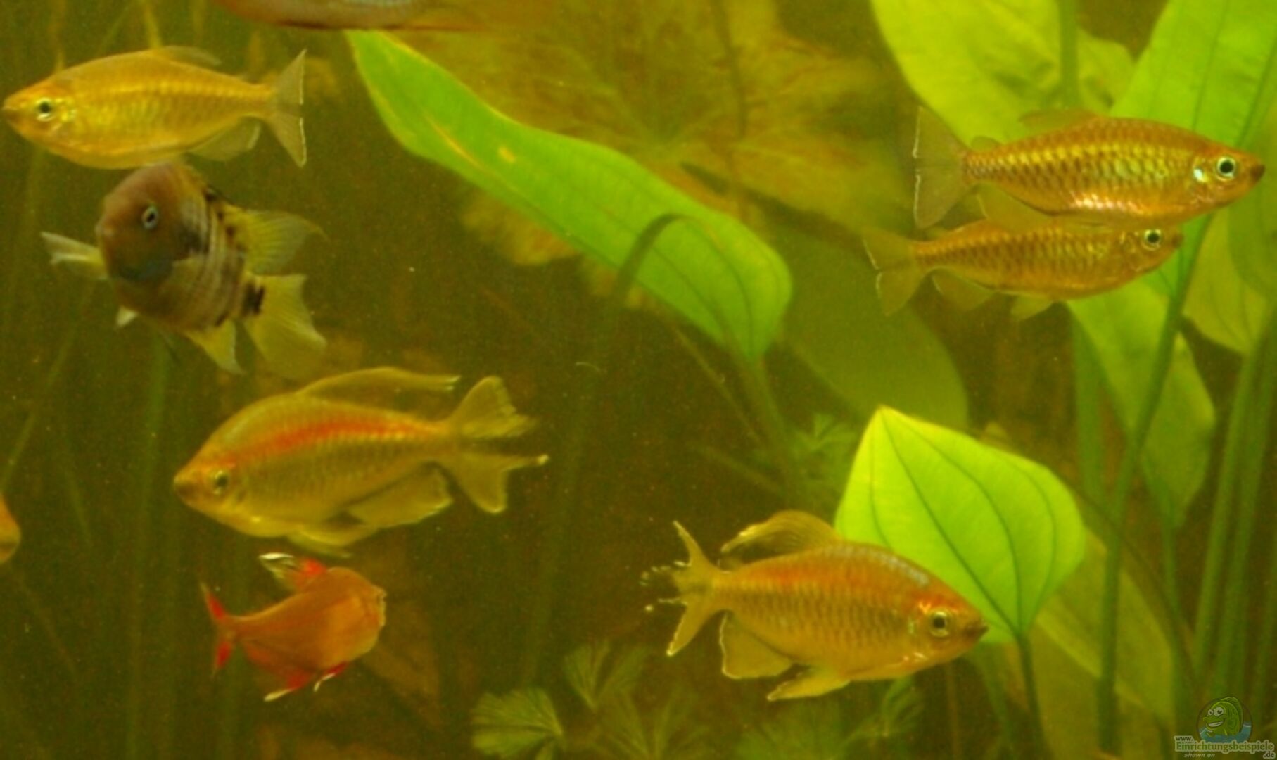 5 x Schmucksalmler (Restbestand, wird nicht mehr aufgestockt) 10 x Blauer Kongosalmerler (Phenacogrammus interruptus)3/7 5 x Skalar(Pterophyllum scalare) 2 x Sajica Buntbarsch (Archocentrus sajica)1/1 2 x Blaupunkt Buntbarsch (Aequidens Coeruleus punctatus)1/1 4 x Eliotti Buntbarsch (Thorichthys ellioti)2/2 1 x Schmetterlingsbuntbasch Weibchen )Microgeophagus ramirezi)(Bock ist gestorben) 1 x Metae Buntbarsch (Aequidens Metae) 3 x Siamesische Rüsselbarbe(Crossocheilus siamensis) 10 [...]