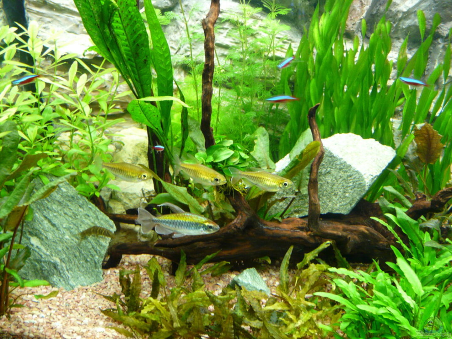 zur Zeit: ca. 15 rote Neonsalmler (Paracheirodon axelrodi) (Zum Teil schon über 6 Jahre alt) 8 Amanogarnelen (zum Teil schon über 4 Jahre alt) 9 blaue Kongosalmler (Phenacogrammus interruptus), 6 Weibchen, 3 Männchen (3 Jahre alt) 1 siamesische Streifenschmerlen (Botia striata) (über 6 Jahre alt) 2 Schachbrettschmerlen 1 L177 Gelbsaumwels (den pflege ich schon seit über 10 Jahren) Ich hatte viele Jahre immer noch 2 Skalare im Becken. Bis der Mann der Frau die Augen verpickte, [...]