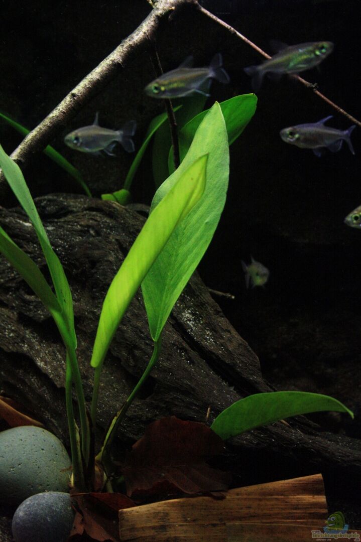 Die gewählten Pflanzen stammen alle aus dieser Region: Anubias congensis Wissenschaftlicher Name: Anubias congensis Handelsname: Kongo-Speerblatt natürliches Vorkommen: Tropisches Westafrika Wuchshöhe: 30-60cm optimaler Temperaturbereich: 22-28°C Vermehrung: Teilung des Rhizoms, wobei jedes Teilstück drei oder mehr Blätter haben sollte um ein zügiges Weiterwachsen zu gewährleisten. Verwendung: Hintergrund oder als Solitärpflanze in grö??eren Aquarien Lichtbedarf: [...]