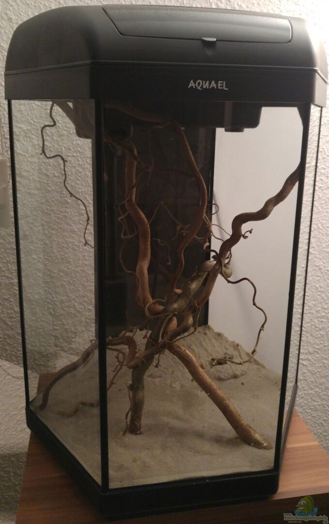 Das Aquarium ist ein sechseckiges Becken von Aquael: "HEXA SET LT 60"
