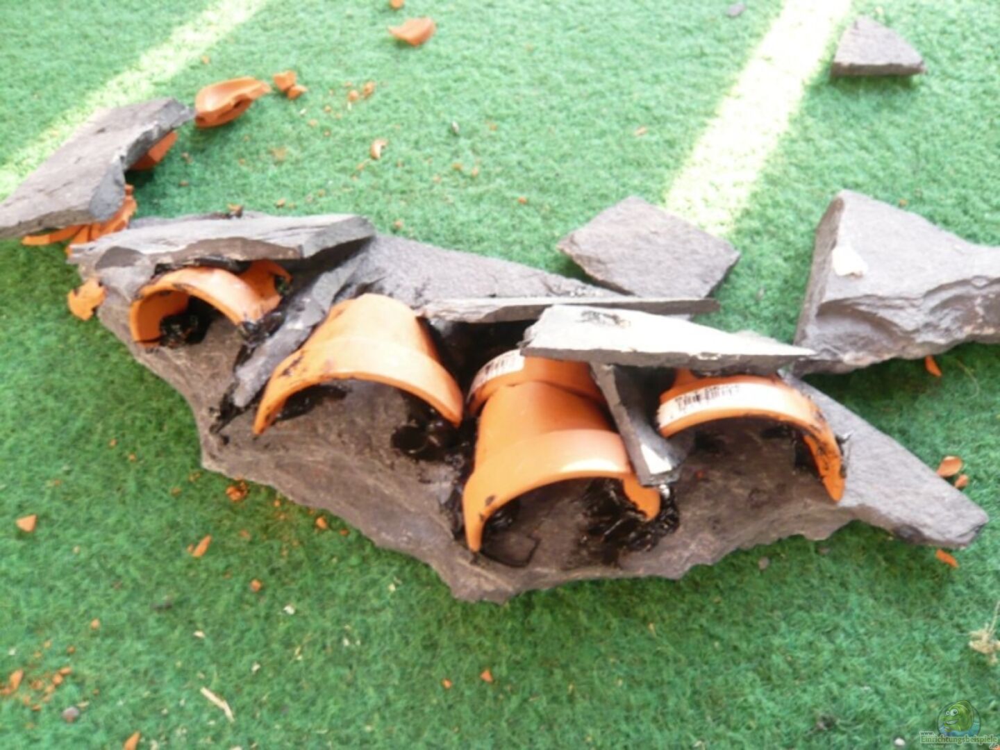 4 x Mangrovenwurzel 3 x Laichhöhlen 10 x Krebshöhlen 3 x Höhlen aus Schiefer ( scharfe Kanten abgeschliefen ) alle Höhlen aus Schiefer wurden abgeschliffen damit sich die fische nicht verletzen. Styropor Rückwand