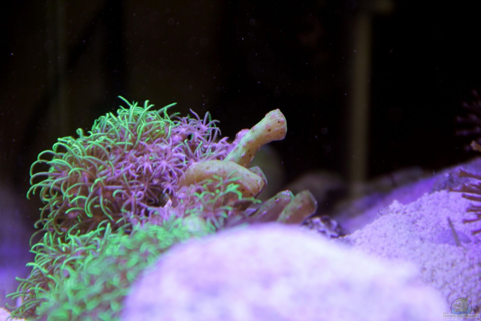 Fische Arzur-Riffbarsch = Chrysiptera hemicyanea Sechsstreifen-Lippfisch = Pseudocheilinus hexataenia Dekor-Schwertgrundel = Nemateleotris decora Gelbe Korallengrundel = Gobiodon okinawae Paletten Doktorfisch = Paracanthurus hepatus (vorübergehender Gast) LSD Mandarin-Fisch = Synchiropus picturatus 2x Falscher Clown - Anemonenfisch = Amphiprion ocellaris Niedere Tiere Wei??bandputzergarnele = Lysmata amboinensis Randalls Knallkrebs [...]