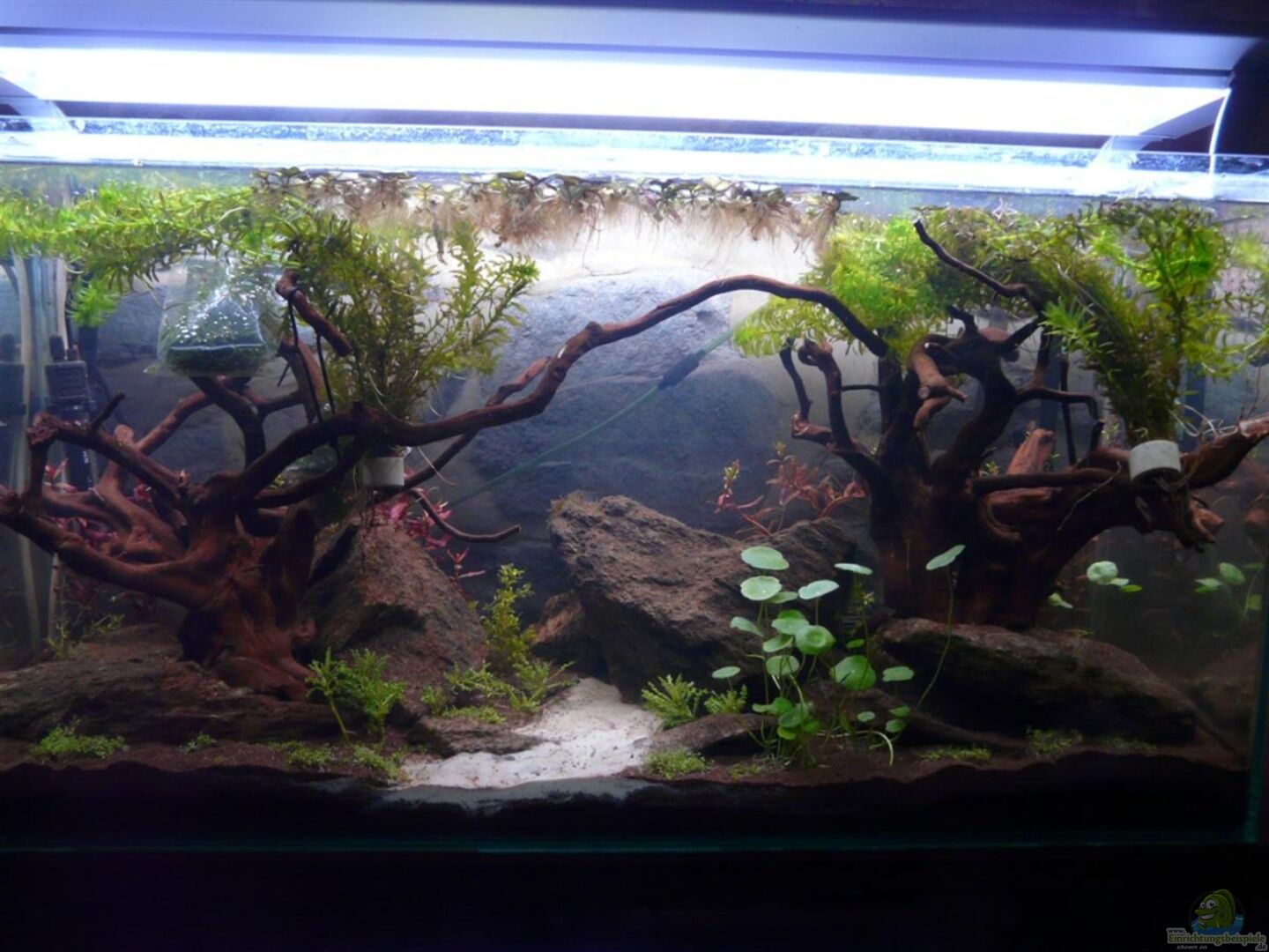 Ich bin Anfänger in der Aquaristik. Aber die Aquascapings faszinieren mich. Mein Ziel war es Ein Aquascaping zu schaffen, dass den Bewohnern gerecht wird. Ich wollte auch nach Möglichkeit auf zu viel Technik und Düngung verzichten. Eigentlich sollten es nur Fische aus Neu Guinea werden. Allerdings passten die Flossensauger dann doch noch gut rein.