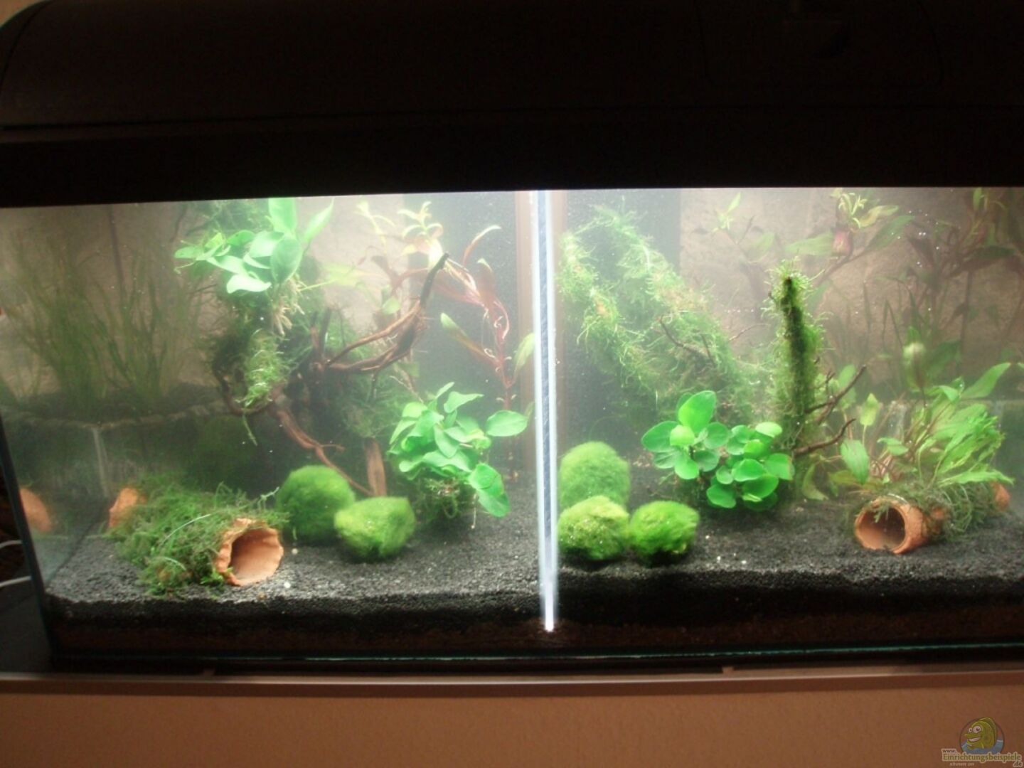 Das Becken hat in der Mitte eine eingeklebte Trennwand. Somit ergeben sich pro Seite ein Volumen von 27 Ltr.