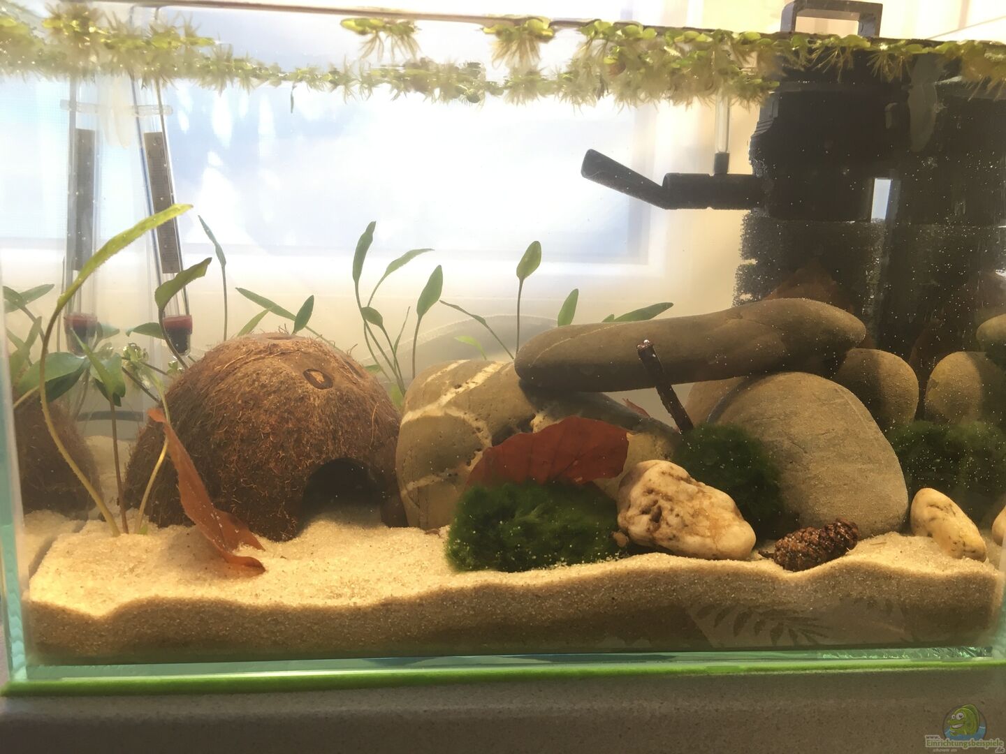 Becken war nicht geplant.. Nachdem die Garnelen im Gesellschaftsbecken angegriffen wurden, bin ich kurzerhand zum Baummarkt und hab ein Becken geholt, dass auf die Fensterbank daneben passt.