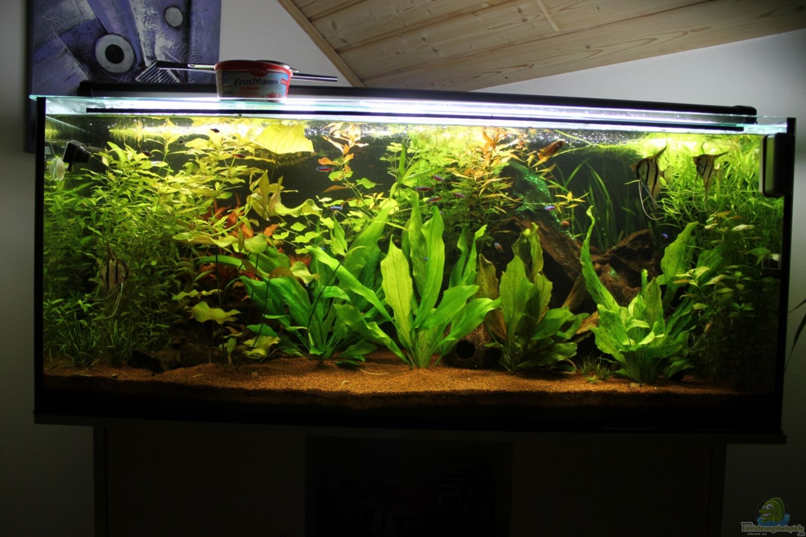 Schwarze Rückwandfolie Unterschrank ist von Juwel. Das Becken ist nur mit einer Glasplatte abgedeckt damit der Wärmeverlust und die Verdunstung geringer ist.