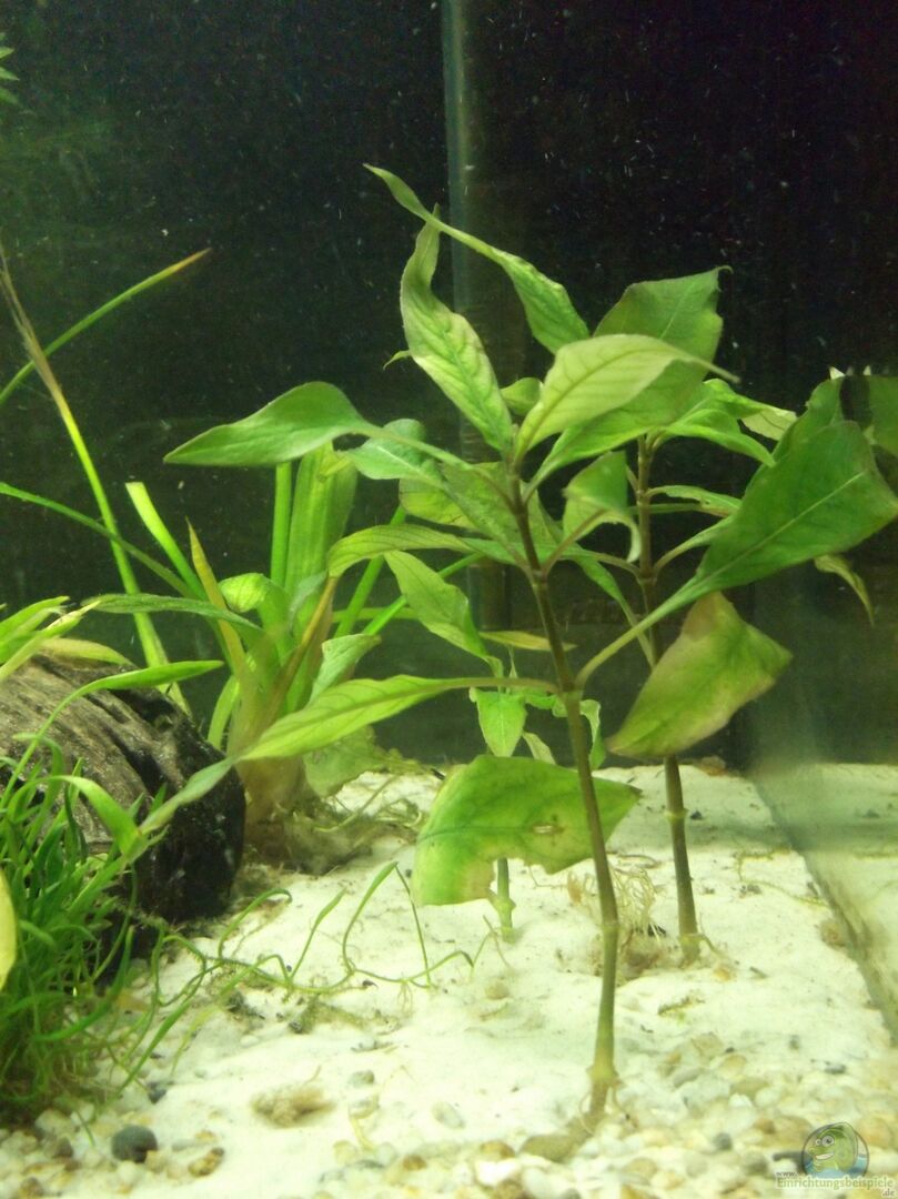Bei der Einrichtung setzte ich folgende Pflanzen ein: 5xSumpfschraube (Vallisneria spiralis) Wissenschaftlicher Name: Vallisneria spiralis Deutscher Name: Gewöhnliche Sumpfschraube Lage im Aquarium: Hintergrund Wuchshöhe: bis 100 cm Wachstum: mittel bis schnell Lichtbedarf: anspruchslos Temperaturspanne: 15-28 °C Wasserwerte: relativ anspruchslos Schwierigkeitsgrad: einfach 2xBreitblättriges Pfeilkraut (Sagittaria platyphylla) Wissenschaftlicher Name: [...]