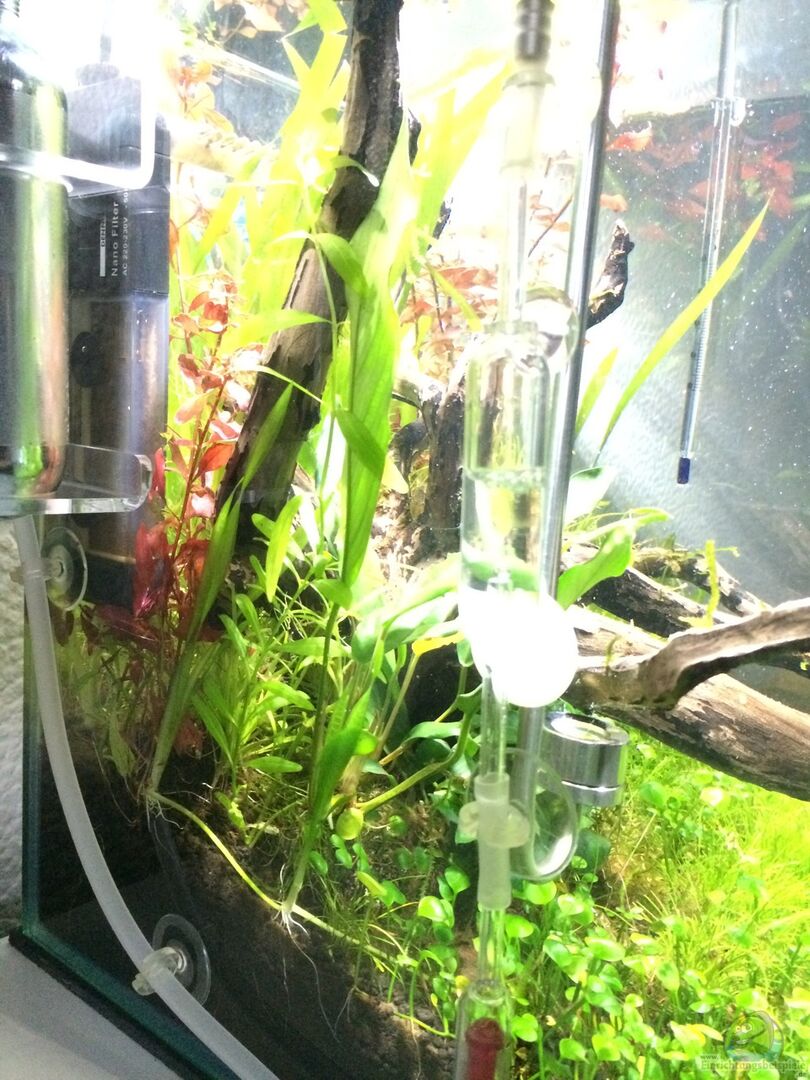 Dennerle Nano Cube 30 Aquasabi HangOn Checker Aqua Rebell Co2 Check Easy Aqua HangOn Thermometer Co2 Checker die über dem Beckenrand hängen find ich dahingehend geschickter weil er ohne Saugnapf betrieben wird. Saugnäpfe lösen sich bei mir einfach ab und an, oder man verpasst den Tag wo man einen neuen hätte kaufen sollen. Dann liegt der Checker da unten im Gestrüpp. Zusätzlich ist so ein hängender Checker natürlich auch ein Blickfang. Nachteil ist ganz klar, wenn zu wenig [...]