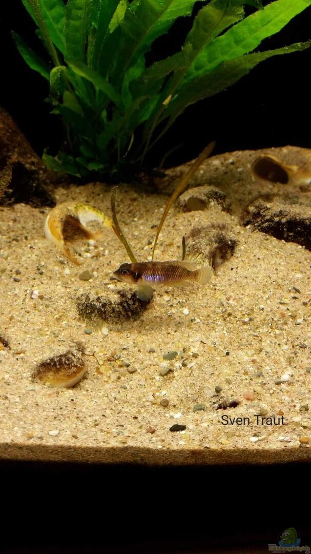 1/1 Lamprologus ocellatus "gold isanga" WFNZ Dieser Cichlide gehört zu den Schneckenbuntbarschen und ist im südlichen Teil des Tanganjkasee zu finden. Dort bewohnt er die ??bergangszone im Geröll und Sandlitoral und ist in tiefen bis zu 17 metern anzutreffen.Dort leben sie an Stellen, wo leere Schneckenhäuser der Gattung Neothauma aufzufinden sind. Diese nutzen die Tiere als Behausung und Brutplatz. Mänchen werden ca. 6 cm gro??, Weibchen bleiben etwas kleiner. Im See [...]
