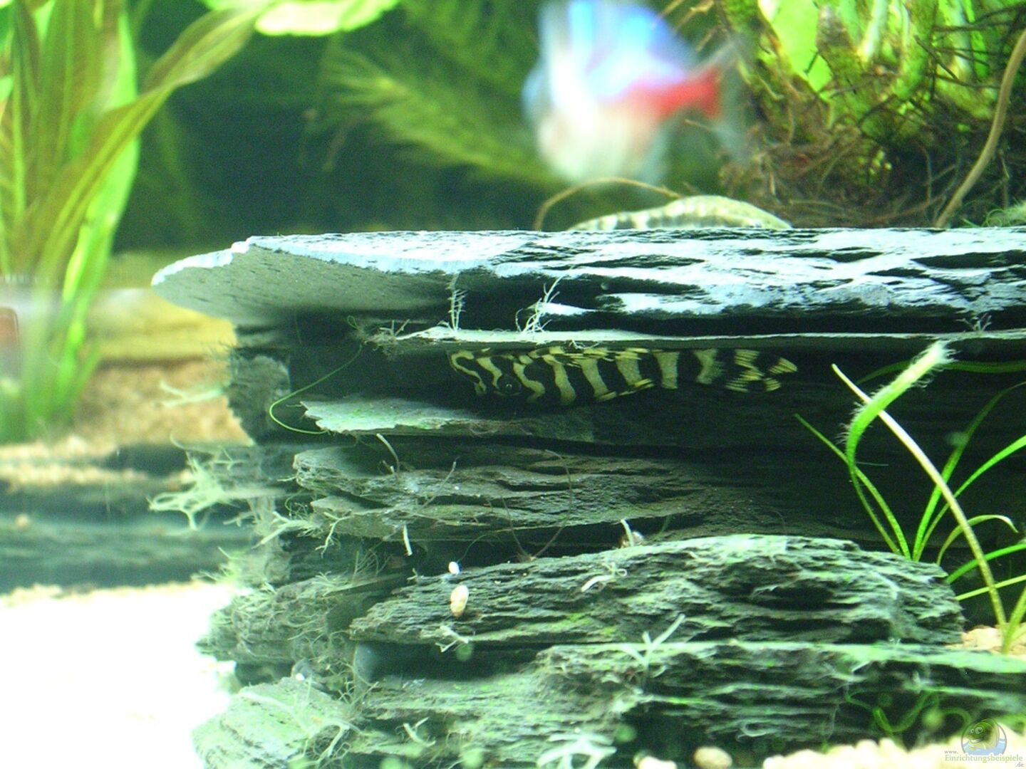 Stand 05.04.2015: 1m Apistogramma agasizii (agasiziis Zwergbuntbarsch); "Charly" zur Zeit alleine 3 L103 Pecoltia spec. ca. 8 Caridina vaponica (Amano-Garnelen) ca. 11 Otocinclus macrospilus (Ohrgitterharnischwels); "Die Horde" ca. 30 Paracheirodon axelroid (Roter Neon); "Der Schwarm" noch 2 Carnegiella strigata fasciata (Marmorierter Beilbauch); werden nicht mehr aufgefüllt. 5 Crossocheilus siamensis (Siamesische Rüsselbarbe); "Der Trupp"; [...]