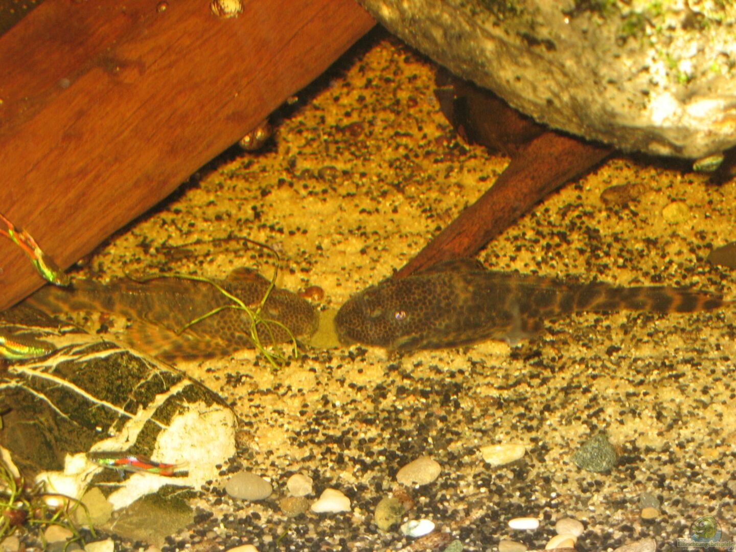 Fische: 4 Baryancistrus demantoides (l200 Highfin) ca. 12-16cm, Geschlechter sicherlich zwei Weibchen (da ohne Brustflossenodontoden) die anderen beiden noch unklar. 6 Panaqolus sp. aff. maccus, Geschlechter ebenfalls noch unbekannt, da ich die auch sehr selten sehe (wobei hier mittlerweile sicher von 2 Männchen die Rede sein kann, da am Hinterleib über und über bestachelt. 1 Ancistrus sp. Weibchen als "Gandenbrotempfänger" 2 Ancistomus spec. L147 (wahrscheinlich [...]