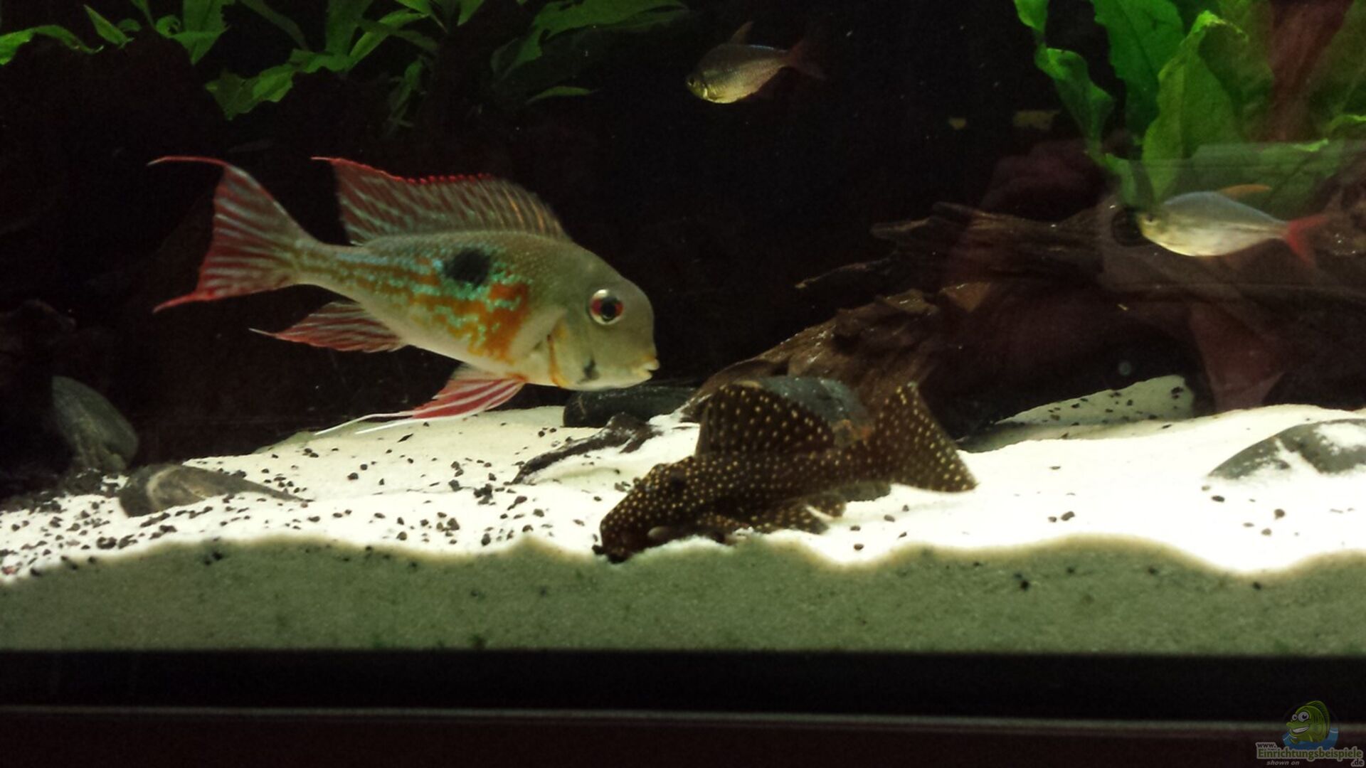 2 x L 7 - leporacanthicus Galaxias 6 x LDA16 Ancistrus red 2 x Gephagus Proximus (WF) 3 x Geophagus red head (WF) 1 x Apteronotus Albifrons - Wei??stirnmesserfisch 5 x Methynnis Argenteus "cut throat" Für den L7 suche ich noch Artgenossen, es ist aber auch so äu??erst aktiv und macht sich prächtig. Im neuen Becken hat er nun mit dem Besatz sehr seine Scheu und Schreckhaftigkeit abgelegt. Die Geophagus treten meist ruhig in der Gruppe auf. Der Proximus [...]