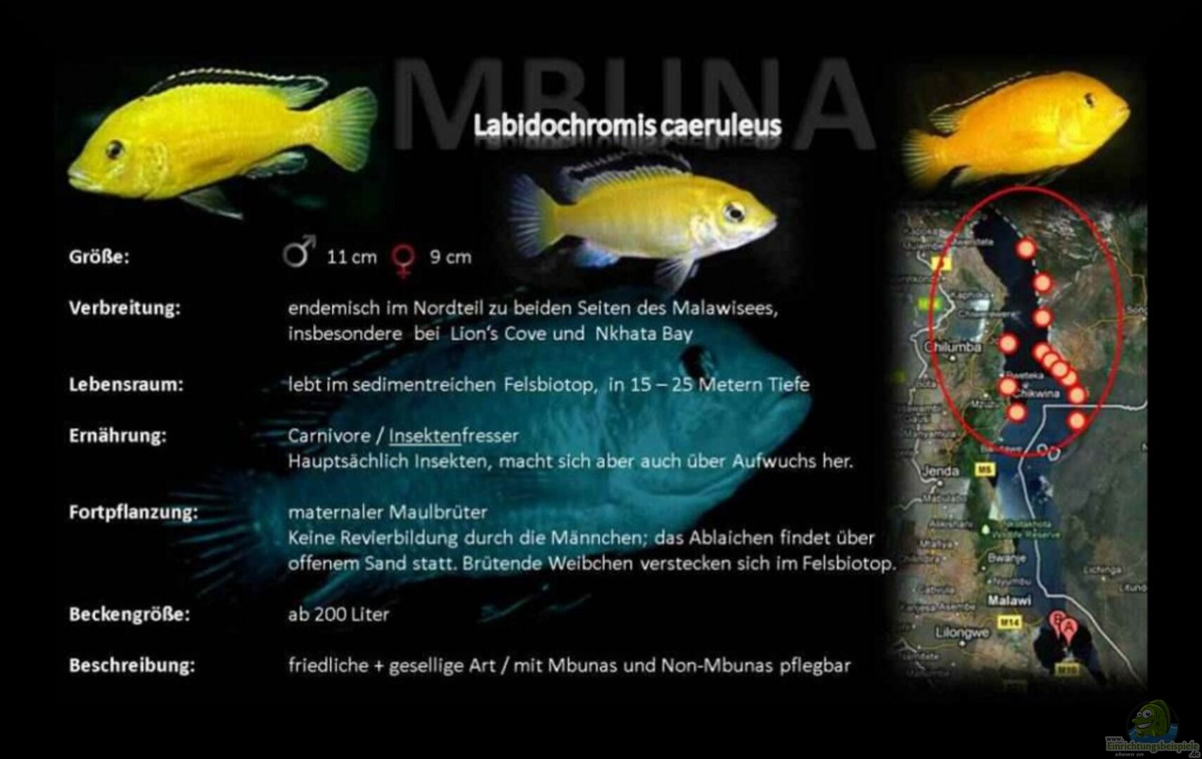 Hier findest du Infos zur Haltung und Beispiele für die Einrichtung deines Aquariums für Labidochromis "Yellow" caeruleus (Gelber Malawimaulbrüter).