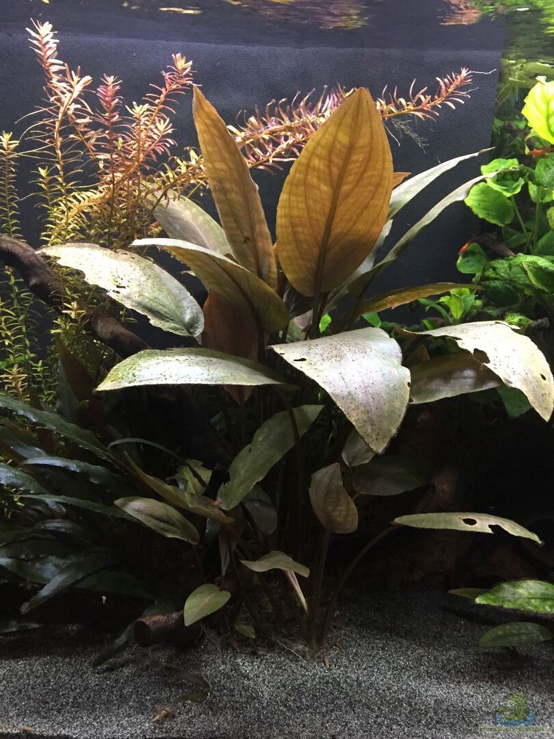 Bei der Bepflanzung habe ich den Fokus auf einfach zu pflegende Arten gelegt, die mit relativ wenig Licht auskommen: Rotala rotundifolia Rundblättrige Rotala Echinodorus Roter Oktober (Schwertpflanze ???Roter Oktober???) Hygrophila ???Siamensis 53B??? (Kirschblatt) Lagenandra meboldi ???Red??? (Meebolds Lagenandra) Nymphoides hydrophylla Taiwan (Wasserblättrige Seekanne) Cryptocoryne pontederifolia (Herzblatt-Wasserkelch) Cryptocoryne x purpurea (Purpur Wasserkelch) Cryptocoryne [...]