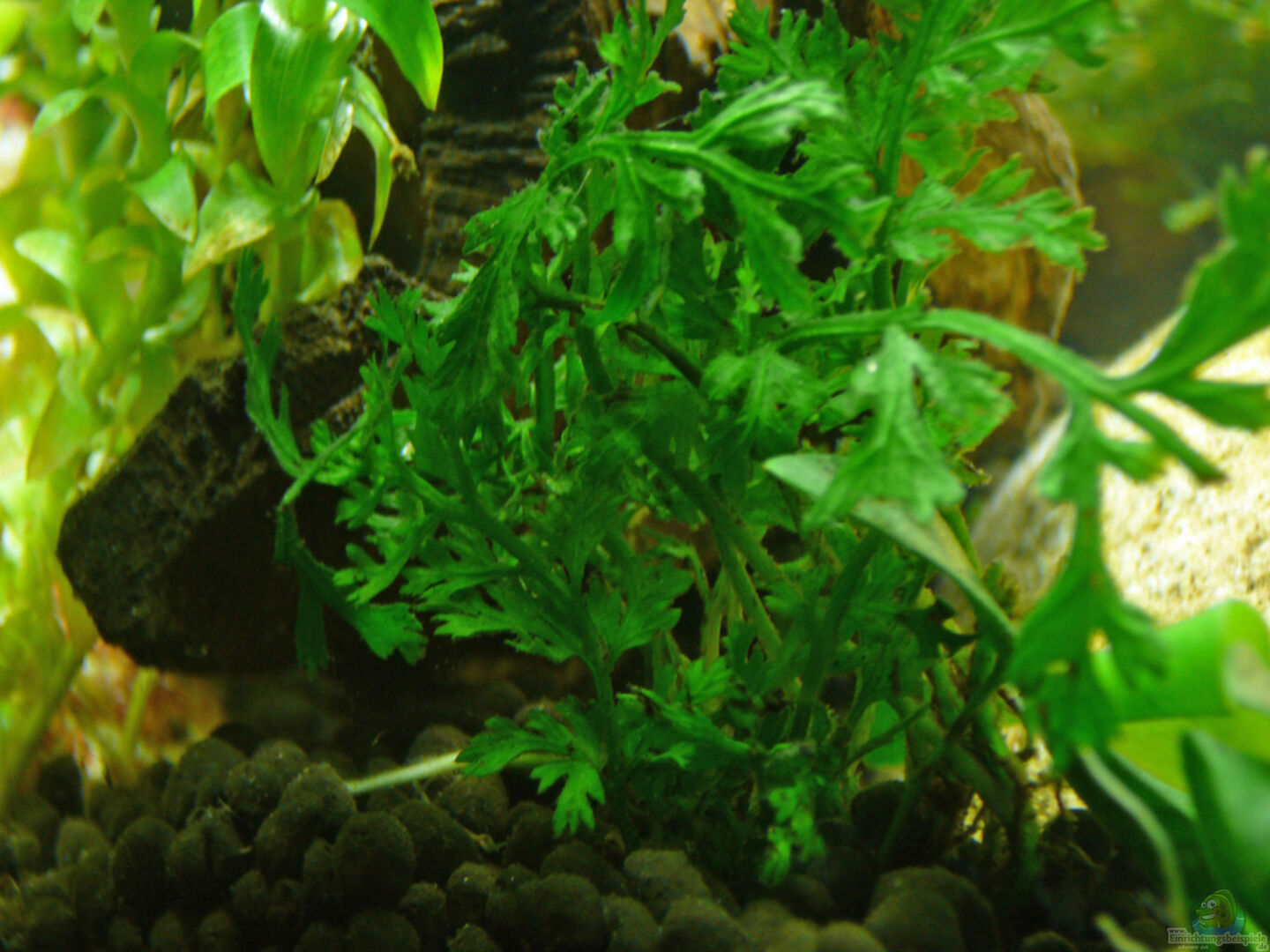 Bolbitis heteroclita difformis : Kleinbleibende, langsam wachsende Farnpflanze mit dicht verzweigten, kriechenden Fiederblättern. Die Art wird auf einer Wurzel oder einem Stein gebunden, da der Wurzelstock im Bodengrund fault. Eisen, Kalium und CO2 Düngung wirken sich positiv auf das Wachstum aus. Der pH Wert sollte im leicht sauren Bereich (nicht über 6, 8) liegen. Ist der pH zu hoch, beginnen die Blattspitzen schwarz zu werden, was sich mit der Zeit auf die ganze Pflanze ausdehnen kann. [...]