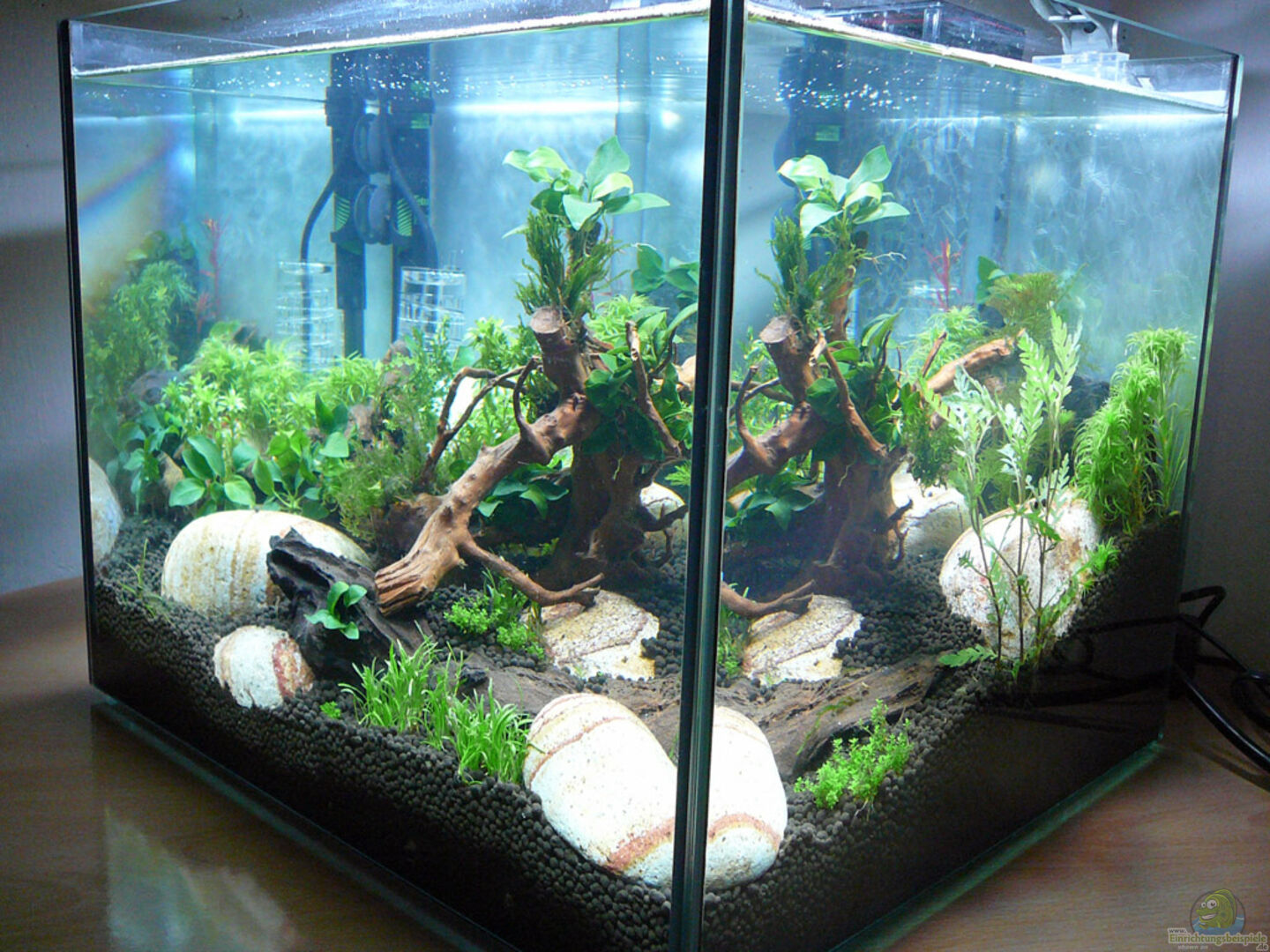 Das Glas hat eine Würfelform die etwas mehr Fassungsvolumen hat als die üblichen Nano Cubes. Es wurde von einem Glaser angefertigt. Dies gab mir bei der Gestaltung einen etwas grö??eren Spielraum.