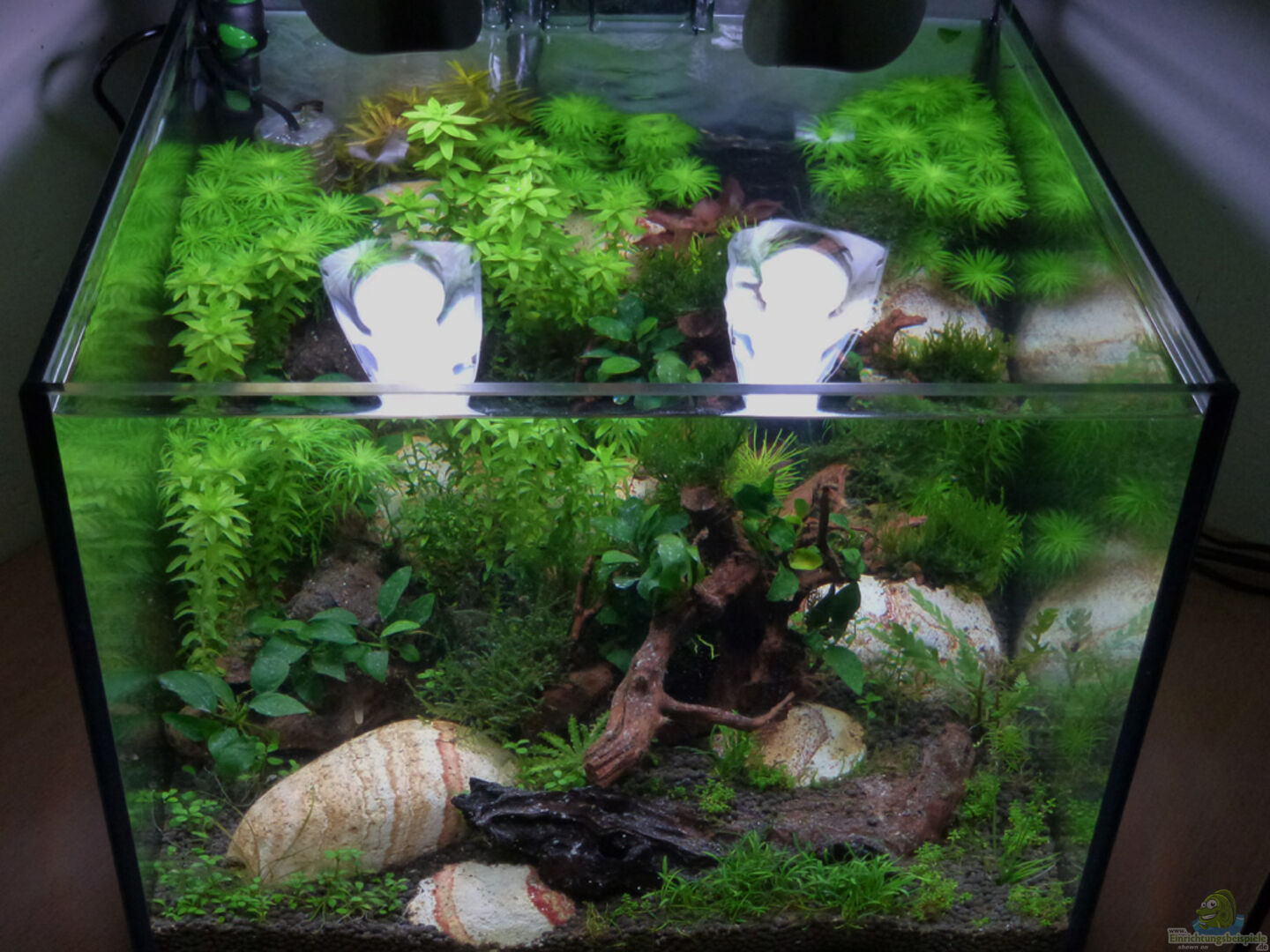 Das Glas hat eine Würfelform die etwas mehr Fassungsvolumen hat als die üblichen Nano Cubes. Es wurde von einem Glaser angefertigt. Dies gab mir bei der Gestaltung einen etwas grö??eren Spielraum.