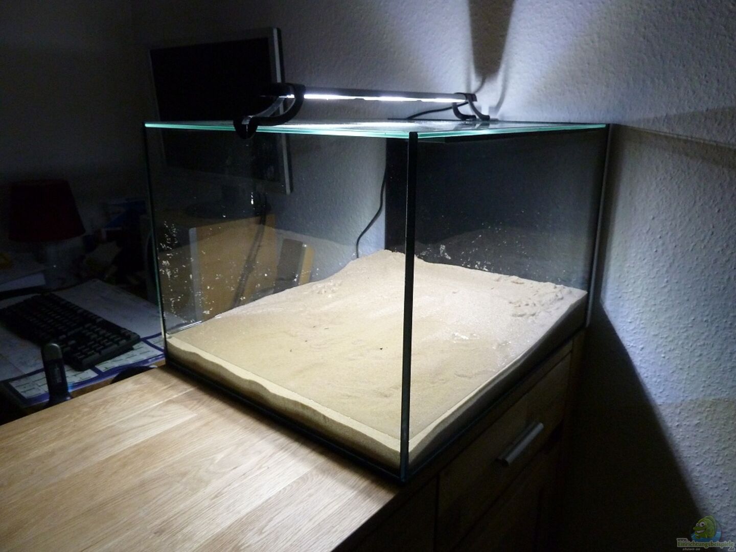 Da in meiner Wohnung derzeit nur ein kleines Garnelen-Cube steht und ich meine übrigen Becken bei meinen Eltern zurück gelassen hab möchte ich mir ein neues Becken einrichten in dem auch Fische gepflegt werden sollen. Ma??anfertigung von Aquaristik-Kaiser. 2 Deckscheiben. Wandseitig mit Styropor isoliert. Schaumstoffunterlage. Rückwand mit mattschwarzer Folie beklebt. PS: ich habs leider nicht raus wie Aquarien vernünftig fotografiert werden.