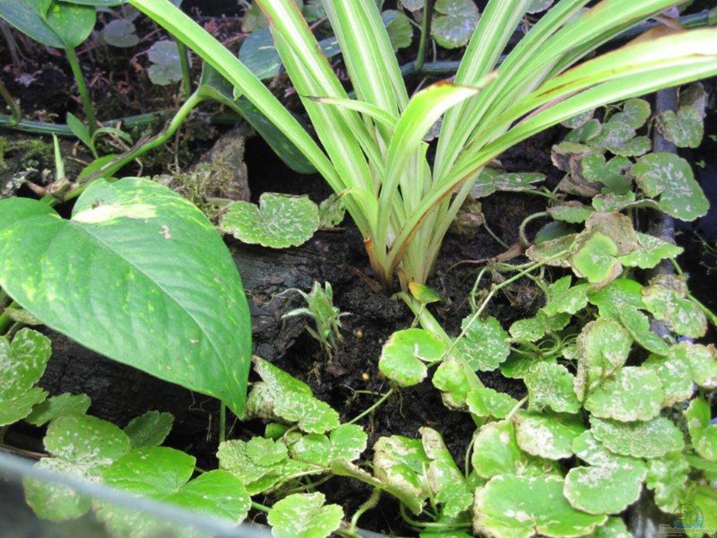 Wasserpflanzen: Anubia nana und bartheri Echniodorus (?) kleinbleibend Javamoos (Riccia hat sich eingeschleuchst und wächst nun drauf) Ludwiga Repens Süsswassertang ( Pellia und ähnliches wie Javamoos haben sich eingeschleust und wachsen nun auf dem Tang, mal schauen was draus wird) Mooskugel Zwerpfeilkraut Cabomba caroliniana Haarnixe (wird in ein anderes Becken gesetzt, mit mehr Licht) brasilianischer Wassernabel Javafarn Echinodorus palaefolius (?) Landpflanzen: brasilianischer [...]
