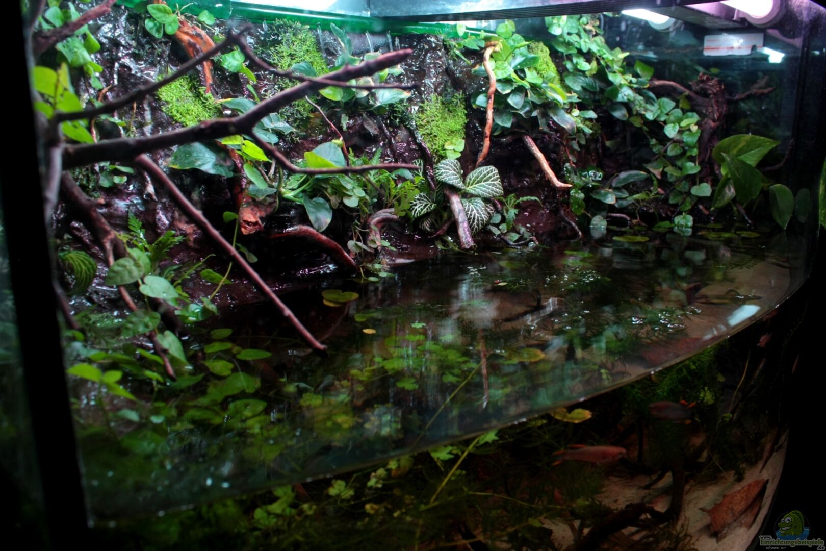 Das Becken ist ein Juwel Vision 180. Es handelt sich hierbei um ein Paludarium, welches bis etwas über die Hälfte befüllt ist