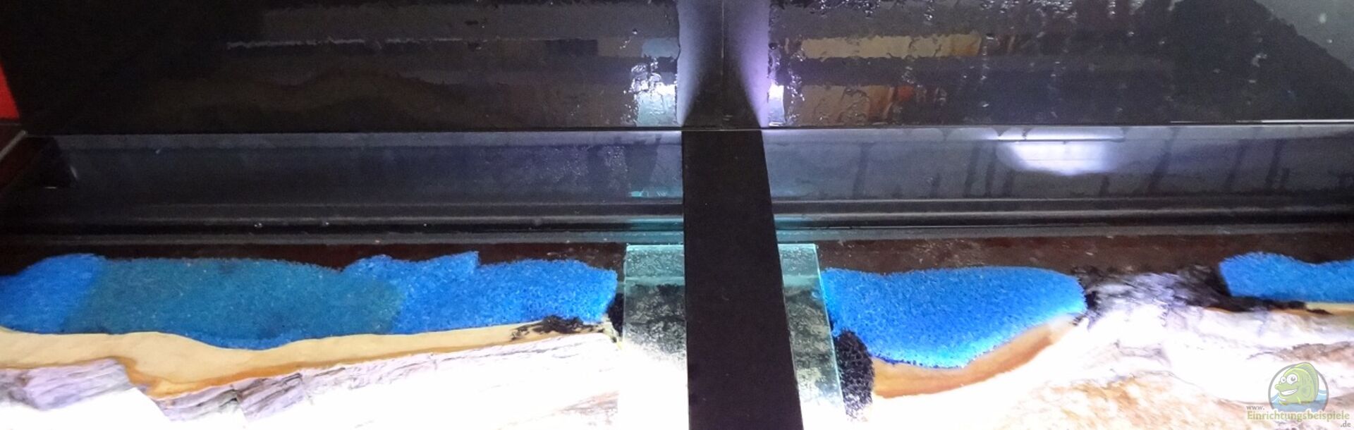 Rückwand von AquaTerra "Malawi Rock" in sandfarben. Die Seitenwände und der Boden sind mit Modulsteinen, u. a. von Pangea besetzt.