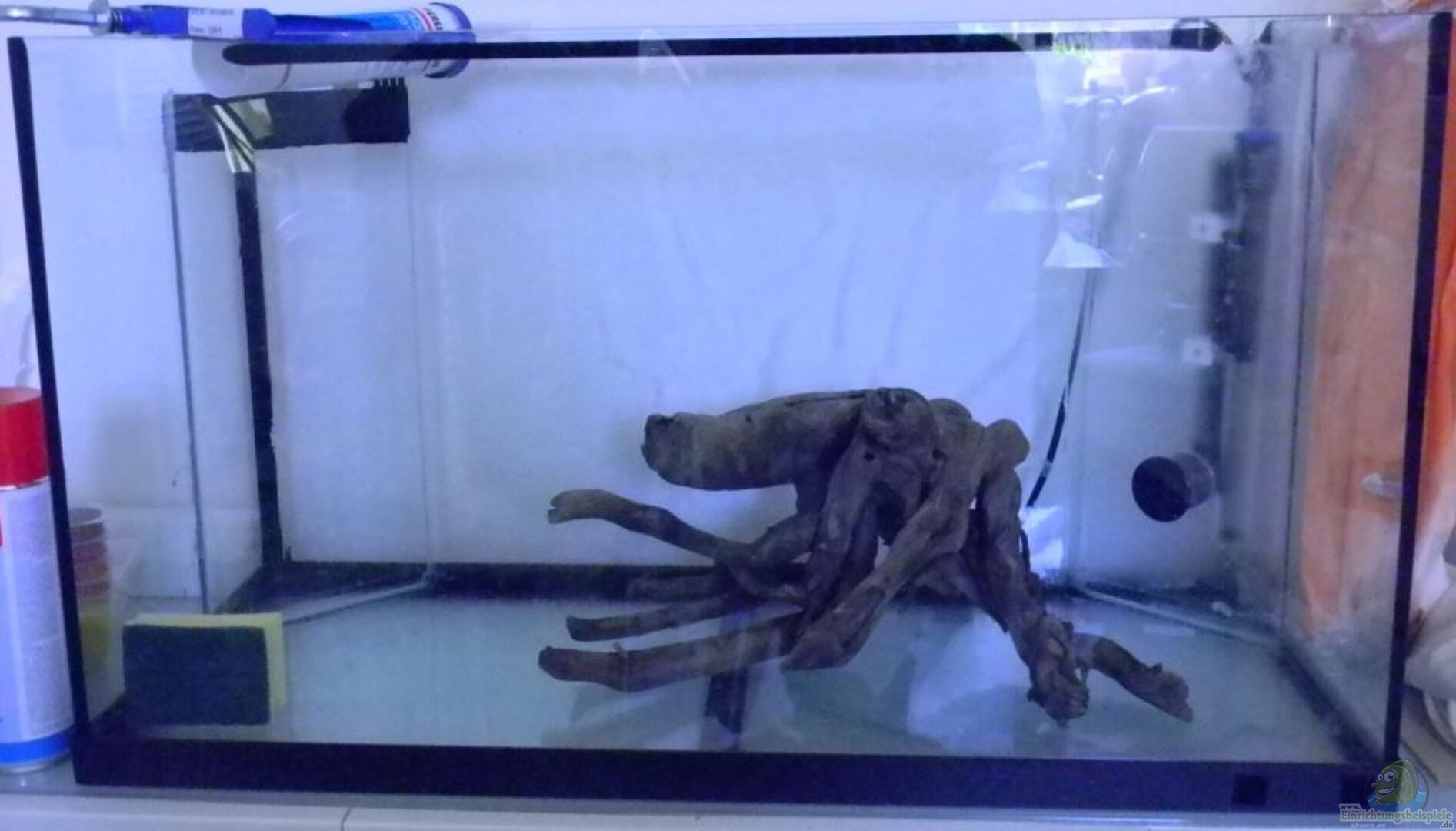 Die Rückwand ist Marke Eigenbau aus Bauschaum, Portlandzement, Styropor. Ich habe ein paar Joghurtbecher für die Pflanzen eingebaut. Versiegelt ist das ganze mit Epoxitharz.