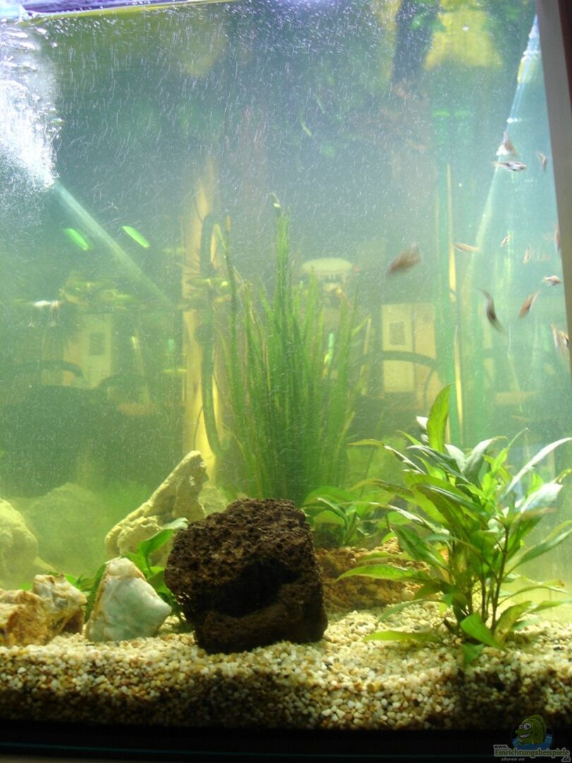 Aufbau aus zwei Schieferplatten und einem Findling, ein Spagettistein, ein Mondgestein, ein Lavastein, vier verschiedene Wurzeln, 3 kleine Halbedelsteine, weitere kleinere Steine