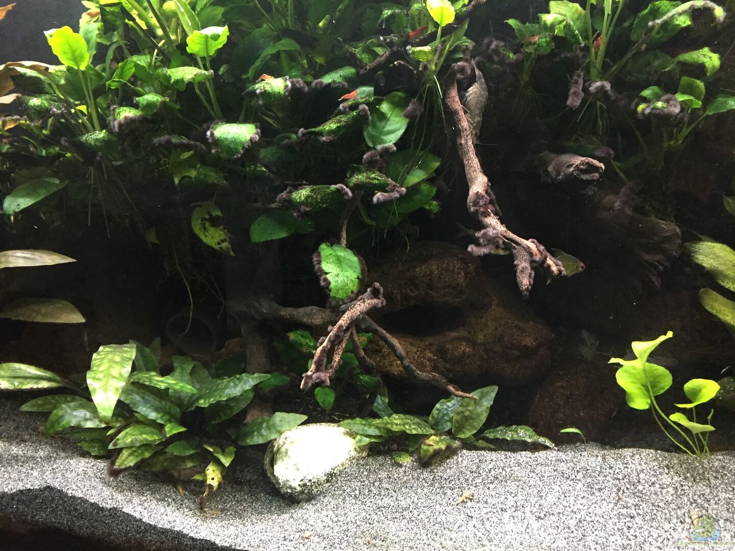 Das Becken besteht aus zwei Steinaufbauten aus Lavasteinen, die fast bis zur Wasseroberfläche reichen und auf denen zwei gro??e rote Moorwurzeln platziert wurden. Ziel war es eine Art Abbruchkante mit einem gro??en Wurzelgeflecht nachzubauen. Jeder Lavastein hat eine individuelle Höhle. Des Weiteren sind noch 3 Moorkienwurzelhöhlen integriert sowie einige Moorkienwurzelstücke. Ingesamt wurde somit eine Vielfalt an Strukturen und Rückzugsräumen sowie schattigen und helleren Bereichen geschaffen, [...]