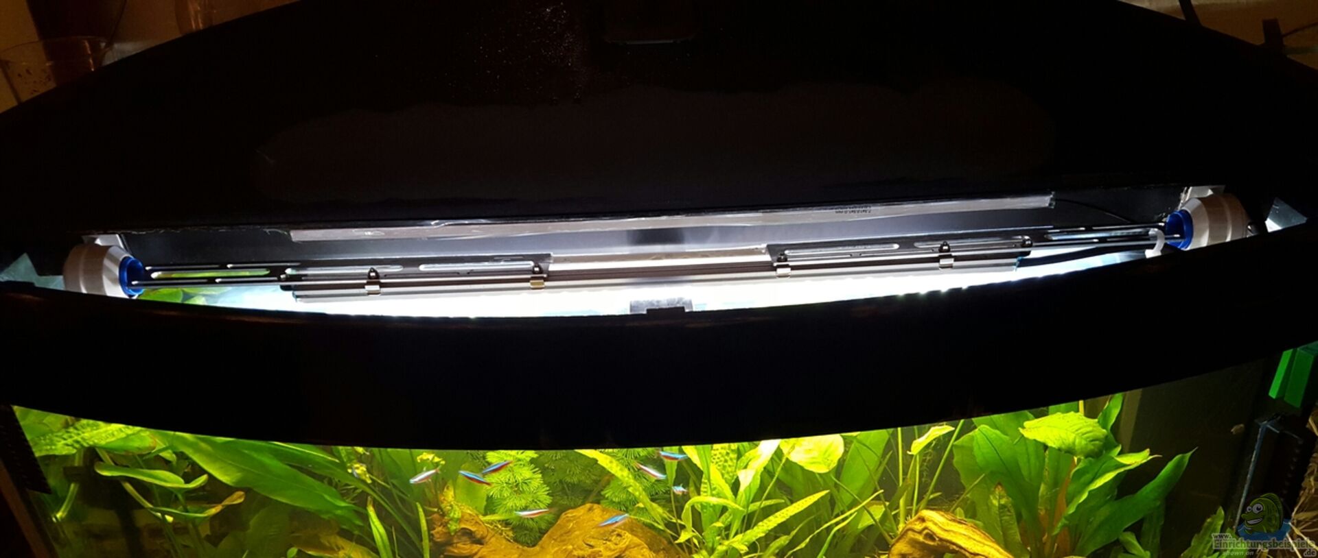 Nach Umzug wurde das Becken heute komplett neu aufgesetzt. Bodengrund wurde teils übernommen und etwas vom alten Wasser. Au??enfilter nicht gereinigt und mit Inhalt angeschlossen. Nun also wieder von vorn einlaufen lassen. Hoffe durch die Ma??nahmen geht es einigerma??en. Bereits mein 5. Aquarium und auch das grö??te bisher. Hobby eben wieder nach Jahren Pause "neu" entdeckt. Aqua und Unterschrank wurden selbst mit meiner Partnerin umgestaltet. Juwel Vision 180 Buche im Shabbylook. [...]