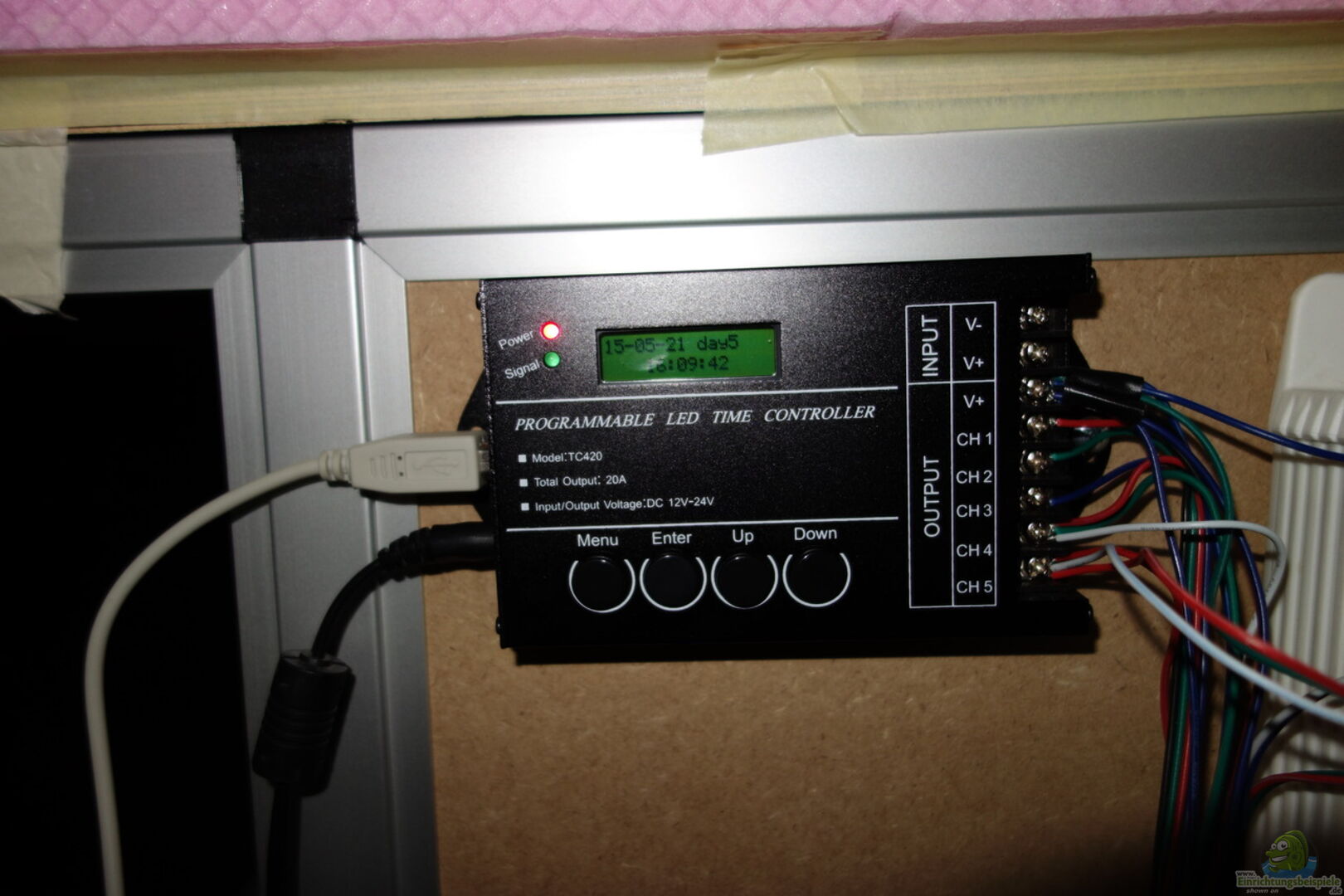 LED Controller. Links Strom und USB Anschluss zur programmierung, rechts die Channels von Ba Bu (12)