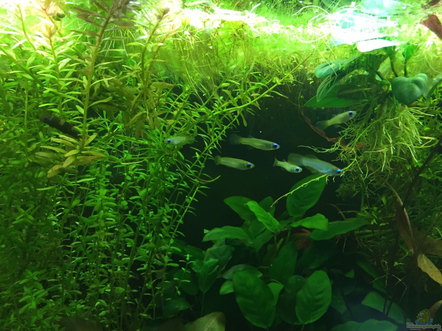 15 Angolabarben (Barbus fasciolatus) 15 Normans Leuchtaugenfische (Poropanchax normani) 2 Purpurprachtbärsche (Pelvicachromis pulcher) 5 Panda Saugbarben (Garra flavatra) 10 Amano Garnelen (Caridina multidentata) xx rote Sakura Garnelen (aus meinem 20l Cube) (Neocaridina heteropoda var. red)
